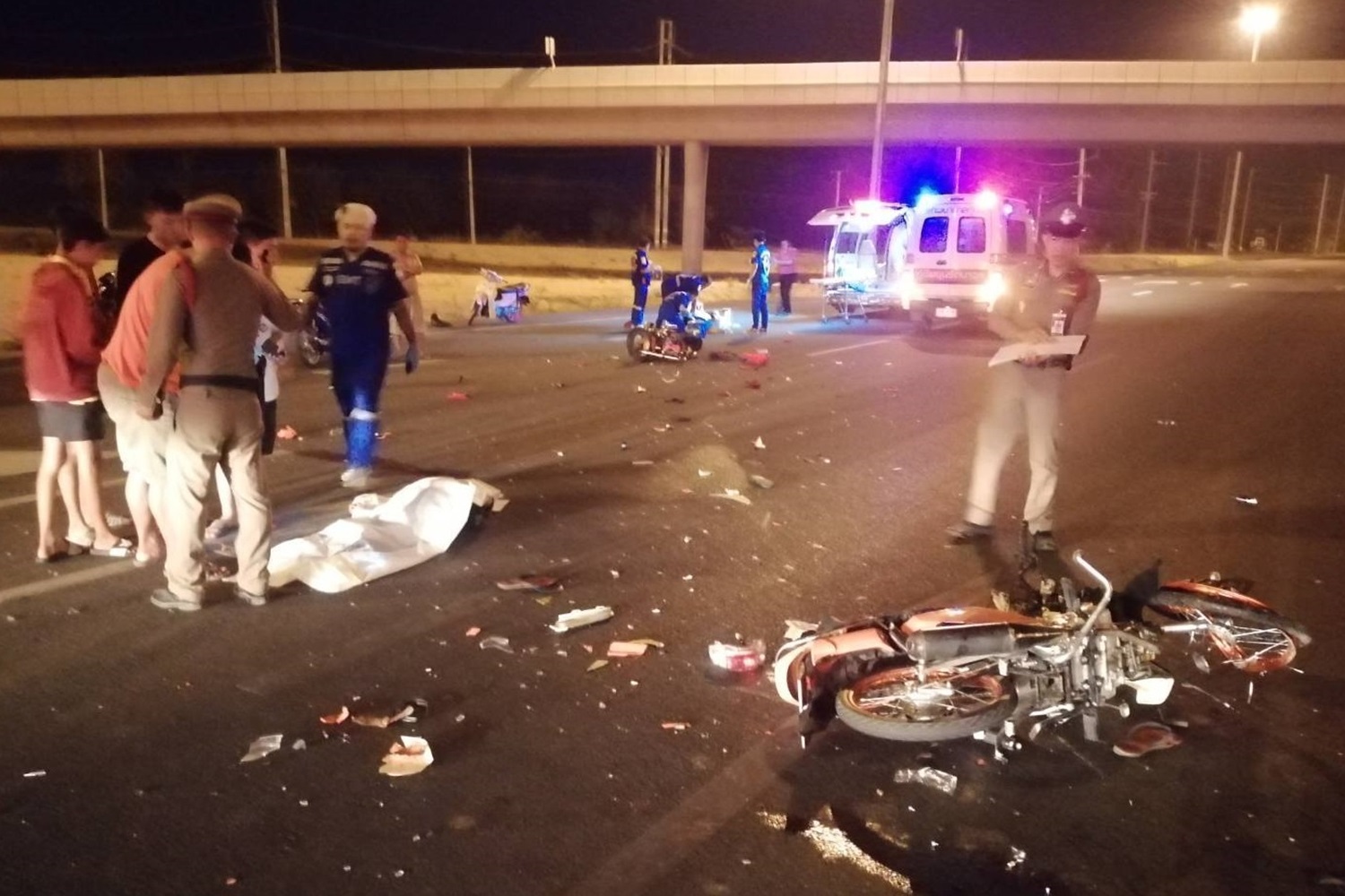 แว้นยึดมอเตอร์เวย์กาญจนบุรี-บางใหญ่แข่งซิ่ง ชนประสานงาตาย2เจ็บ1