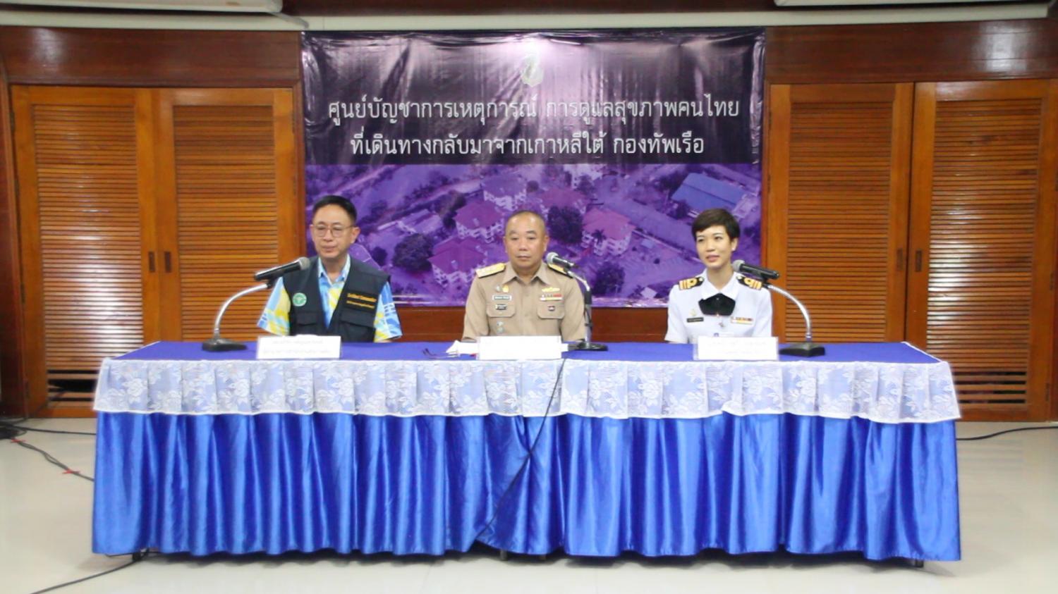 เมื่อวันที่ 12 มี.ค.ที่ ศูนย์บัญชาการเหตุการณ์ฯ อาคารรับรองสัตหีบ อ.สัตหีบ จ.ชลบุรี พล.ร.ท.ประชาชาติ ศิริสวัสดิ์ โฆษกกองทัพเรือ พร้อมด้วย นพ.อภิรัต กตัญญุตานนท์ ผอ.การสำนัก งานสุขภาพที่ 6 และ น.ต.หญิง ปฐวี บุญตานนท์ อายุรแพทย์โรคติดเชื้อ รพ.สมเด็จพระนางเจ้าสิริกิตติ์ ร่วมแถลงขั้นตอนและวิธีการส่งกลับกลุ่มแรงงานไทยจากเกาหลีใต้ที่พักเฝ้าระวังอาการ จำนวน 240 คนกลับสู่ภูมิลำเนาหลังมีคำสั่งจากรัฐบาลให้ดำเนินการปิดศูนย์เฝ้าระวังทั่วประเทศทั้ง 232 ศูนย์ ซึ่งอาคารรับรองที่ อ.สัตหีบ จ.ชลบุรี ถือเป็นหนึ่งในนั้นด้วย