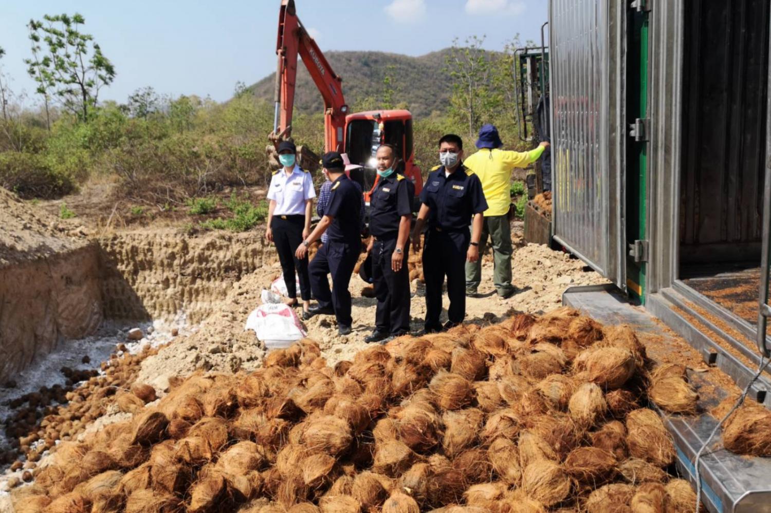 ฝังทำลายมะพร้าวเถื่อน 26 ตันจากอินโดฯถูกลักลอบส่งรง.แปรรูปกระทิกล่อง