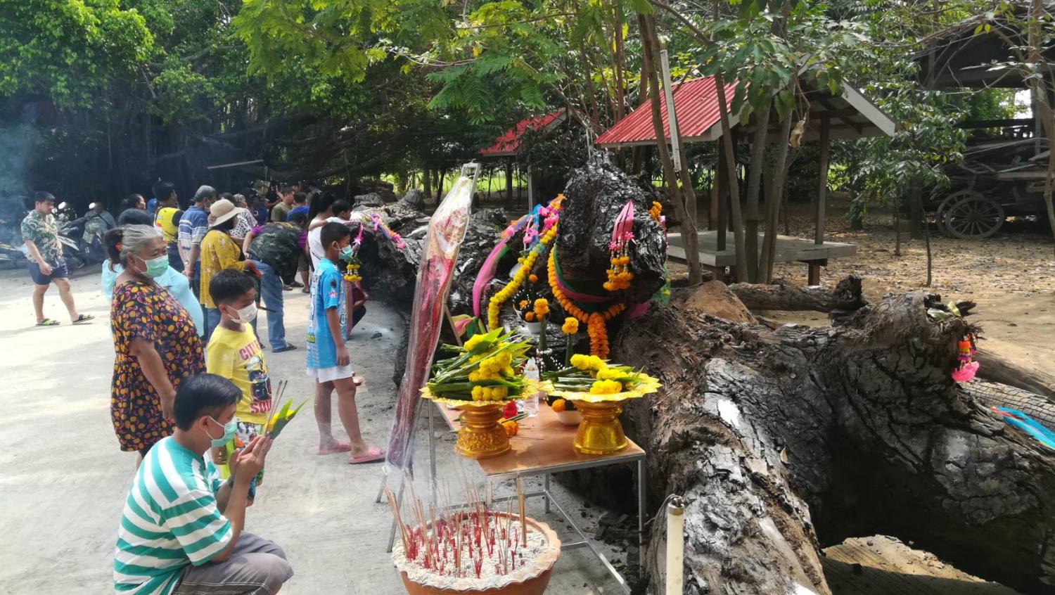 นักเสี่ยงโชคแห่ขอเลขเด็ดจากต้นตะเคียน 100 ปี"เจ้าแม่จันทร์สุดา"แน่นวัด