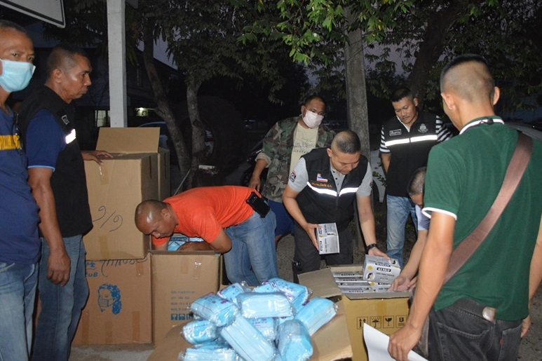 ต่อมาได้พบ รถยนต์กระบะ ยี่ห้ออีซูซุ ตอนเดียวใส่คอกเหล็ก สีขาว ทะเบียน บบ 8368 สระแก้ว ท้ายกระบะมีผ้าใบคุมมาอย่างมิดชิด เจ้าหน้าที่ตำรวจเข้าตรวจค้น พบหน้ากากอนามัยหลากหลายยี่ห้อ รวม 65,000 ชิ้น