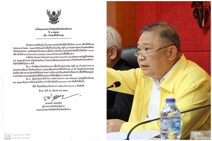 เมื่อวันที่ 21 มี.ค. นายระพี ผ่องบุพกิจ ผู้ว่าราชการจังหวัดฉะเชิงเทรา ประธานคณะกรรมการโรคติดต่อ ออกคำสั่งคณะกรรมการโรคติดต่อจังหวัดฉะเชิงเทราที่ 3/ 2563เรื่องกำหนดพื้นที่ควบคุม