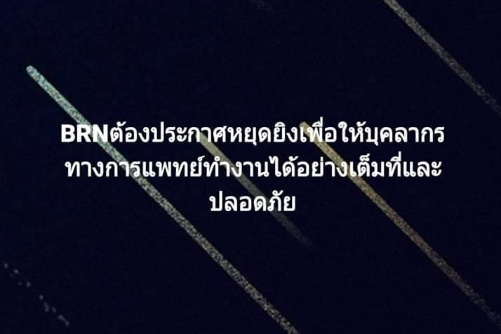 เพจ BRN Army ประกาศยุติการก่อเหตุความรุนแรงระหว่างการแพร่ระบาดของเชื่อไวรัสโควิด-19 ปกป้องบุคลากรทางการแพทย์ ว่าเป็นบุคลากรที่ต้องถูกยกเว้น