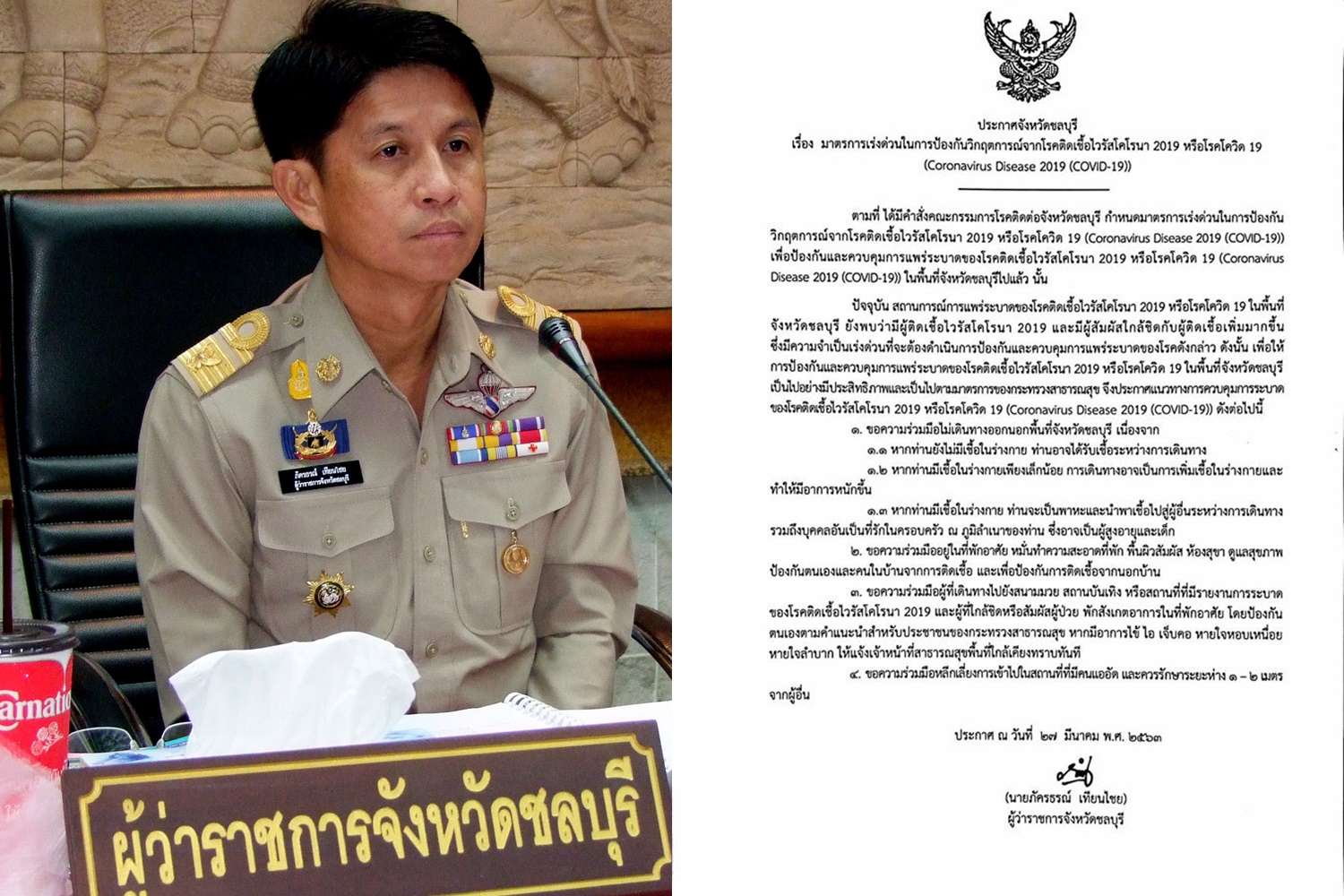 สกัดโควิด-19 ผู้ว่าฯชลบุรีขอประชาชนในพื้นที่งดเดินทาง