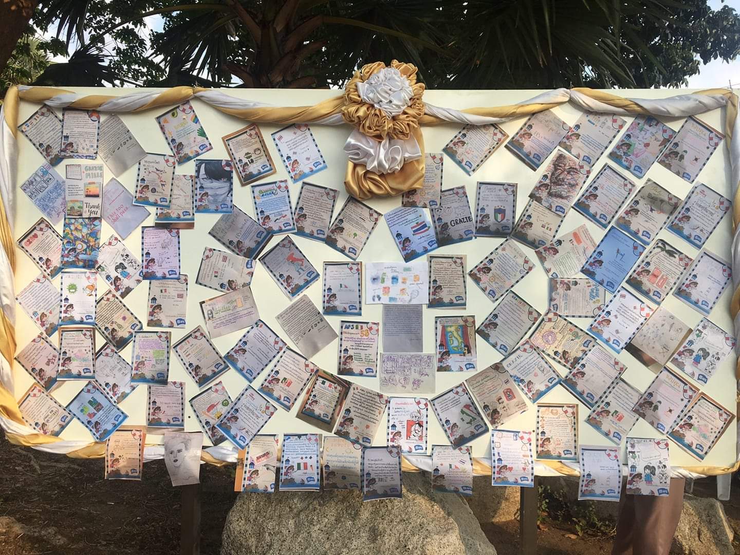 ทั้งนี้ ฐานทัพเรือสัตหีบ ได้นำการ์ดขอบคุณที่น้องๆนักเรียนจัดทำมอบให้แทนคำขอบคุณมาจัดบอร์ดเป็นรูปหัวใจ แสดงความห่วงใยและความผูกพันธ์ที่มีต่อกันตลอดระยะเวลากักตัว 14 วัน