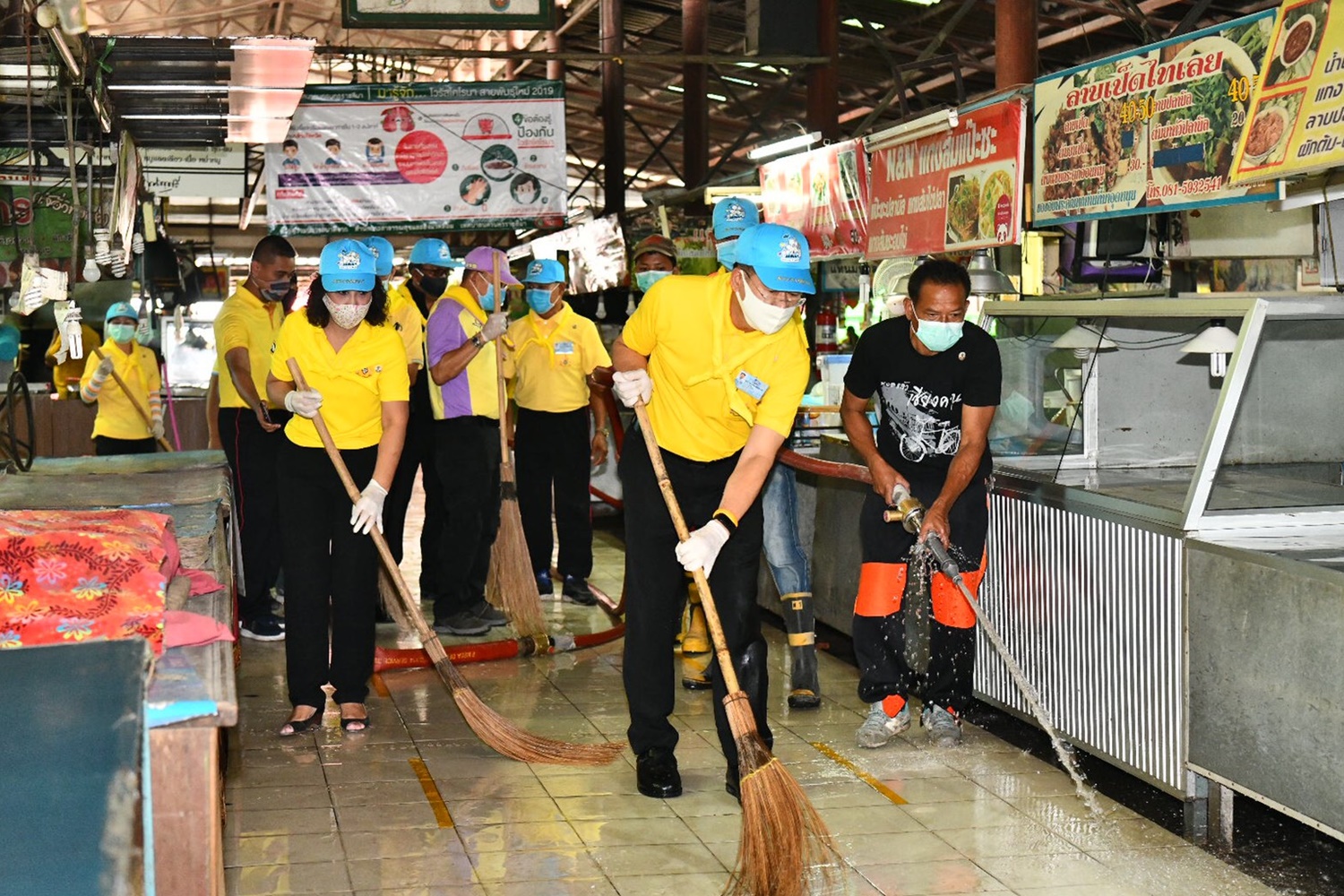 ผู้ว่าฯโคราช นำจิตอาสาล้างตลาดสด ลดเสี่ยงโควิด-19