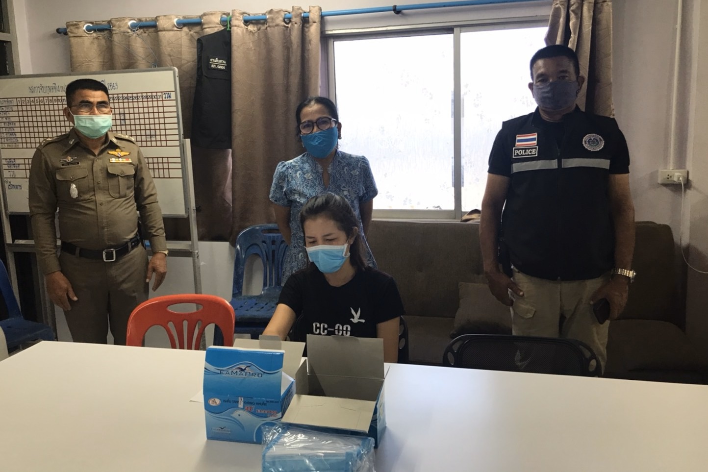 พ.ต.อ.สราวุธ ชูประสิทธิ์ ผกก. สภ.ฉลอง จ.ภูเก็ต มอบหมายให้ พ.ต.ท.สนั่น จันทร์รงค์ รอง ผกก.สส.ชุดปฏิบัติการกก.สส.4 บก.สส.ภ.8 , เจ้าหน้าที่พาณิชย์จังหวัดภูเก็ต ร่วมจับกุมหญิงสาวอายุ 24 ปี รายหนึ่ง ซึ่งขายหน้ากากอนามัยผ่านทางระบบออนไลน์ ในราคาที่เกินกว่า กฎหมายกำหนด ได้นัดรับสินค้ากันในพื้นที่ตำบลฉลอง จังหวัดภูเก็ต พร้อมด้วยของกลางดังนี้