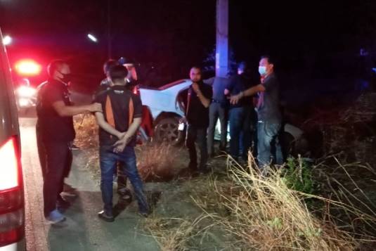 เจ้าหน้าที่ระบุว่า ขณะกำลังตั้งด่านความมั่นคงในช่วงที่มีการประกาศเคอร์ฟิวก็พบรถยนต์เก๋งคันดังกล่าวขับเข้ามา เจ้าหน้าที่จึงให้สัญญาณให้ชะลอความเร็ว และให้หยุดตรวจ แต่ปรากฏว่า คนขับได้เร่งเครื่องหลบหนีฝ่าด่านตรวจออกไปอย่างรวดเร็ว ทำให้เจ้าหน้าที่ต้องรีบหลบ ก่อนไล่ติดตามไป จนรถเกิดเสียหลักพุ่งชนเสาไฟฟ้า ซึ่งทางเจ้าหน้าที่ตำรวจได้นำชื่อคนขับไปตรวจสอบประวัติ พบว่า ชายคนดังกล่าว เคยมีประวัติที่เกี่ยวกับคดีเสพยาเสพติดในเขต สภ.แม่ทา จ.ลำพูน มาก่อน