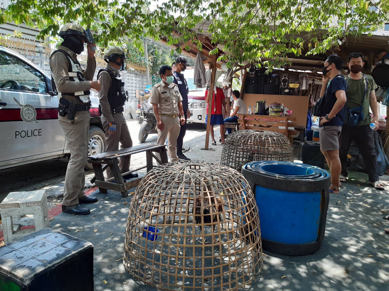 สมุทรปราการ-ตำรวจร่วมกับฝ่ายปกครองบุกจับกุมเซียนพนันไก่ชนมั่วสุมซ้อมตีไก่กันสนุกสนานไม่สนโควิด-19 ขณะเดียวกันก็จับอีก 5 รายล้อมวงกินเหล้าครื้นเครงในเวลาเคอร์ฟิว