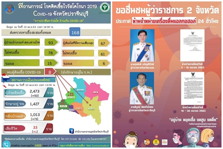 สสจ.ปราจีนบุรี ยืนยัน ยอดติดเชื้อโควิด-19 พบรวม 8 ราย ส่วนรายที่ 9 แม่ค้าปลาทูหน้าค่าย เป็นแค่ข่าวลือ ขณะจังหวัด เร่งวิ่งรถกระจายเสียงประชาสัมพันธ์ ให้ข้อมูลกินร้อน ช้อนกลาง ล้างมือ อยู่ห่าง สวมหน้ากาก งดร่วมสงกรานต์ให้ทั่วถึงมากที่สุด