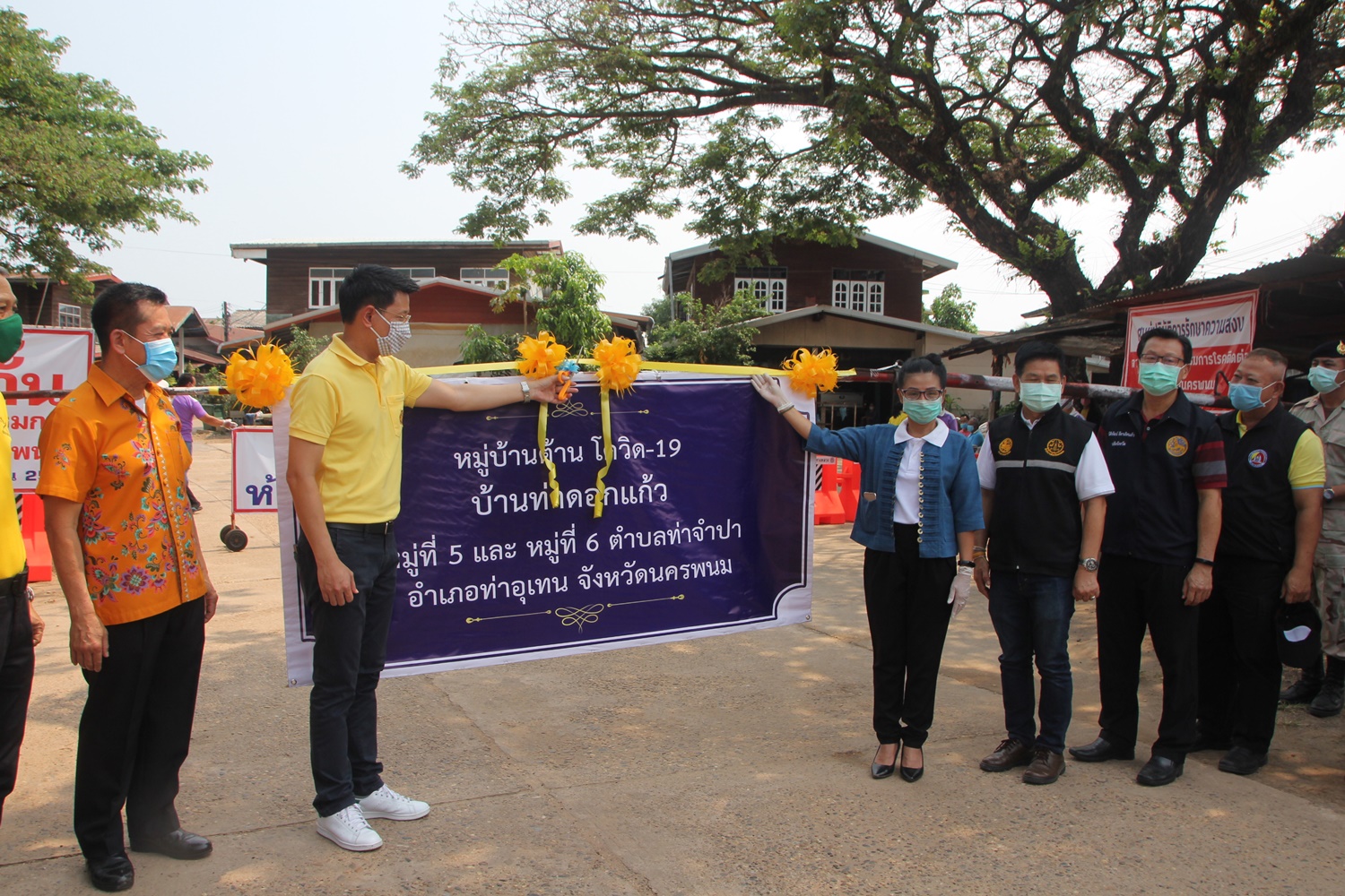 นายสยาม ศิริมงคล ผวจ.นครพนม พร้อมด้วย นางมนพร เจริญศรี ส.ส.เขต 2 นครพนม พรรคเพื่อไทย นำหัวหนาส่วนราชการ เจ้าหน้าที่จากหน่วยงานเกี่ยวข้อง ผู้นำชุมชนท้องถิ่น และ กลุ่ม อสม. ลงพื้นที่ตรวจเยี่ยม ให้กำลังใจ ทำพิธีเปิดหมู่บ้านต้านโควิด ในพื้นที่ บ้านท่าดอกแก้ว หมู่ 5 หมู่ 6 ต.ท่าจำป่า อ.ท่าอุเทน จ.นครพนม โดยก่อนนี้ มีคำสั่ง ล็อกดาวน์ เป็นเวลา 14 วัน เนื่องจาก มีผู้ป่วยเป็นาวบ้านในพื้นที่ กลับมาจาก ทำงาน ที่ กทม. ตั้งแต่วันที่ 20 มีนาคม 2563 จนกระทั่งมีอาการป่วยยืนยันตรวจพบเชื้อโควิด เมื่อวันที่ 27 มีนาคม 2563 จึงมีคำสั่งล็อกดาวน์ เป็นเวลา 14 วัน เพื่อตรวจสอบคัดกรอง ห้ามบุคคลเข้า ออก ควบคุมป้องกันการแพร่ระบาด ซึ่งมีการระดมทีมเจ้าหน้าที่ จาก หน่วยงานเกี่ยวข้องเข้าไปดูแล พร้อมกักตัวเฝ้าระวัง กลุ่มเสี่ยงที่มีความใกล้ชิด จนครบกำหนด และไม่พบว่ามีผู้ป่วยเพิ่ม พร้อมเปิดให้หมู่บ้าน ได้ใช้ชีวิตตามปกติ แต่ยังคงมีการเฝ้าระวังคัดกรอง ต่อเนื่อง