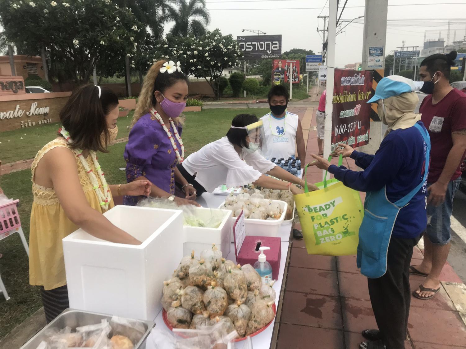 นางวิภาวรรณ อรรถโวภา ชาวบ้านที่มาแจกอาหาร เปิดเผยว่า พวกเราได้ร่วมช่วยกันทำอาหารมาแจกจ่ายประชาชนที่ได้รับความเดือดร้อนจากปัญหาโควิด-19 จนทำให้มีผู้ตกงาน หรือบางคนขาดรายได้ ส่วนใหญ่เป็นผู้ที่ตกงาน อาชีพขับแท๊กซี่ ขับมอเตอร์ไซค์รับจ้าง คนงานก่อสร้าง เจ้าหน้าที่ รปภ. ซึ่งทุกคนล้วนใช้ชีวิตประจำวันอย่างลำบาก พวกเราจึงต้องการช่วยเหลือคนไทยด้วยกัน ให้กำลังใจซึ่งกันและกัน และเนื่องด้วยเป็นวันปีใหม่ไทยจึงได้แต่งชุดไทยตามประเพณีวันสงกรานต์มาสร้างสีสันให้ทุกคน
