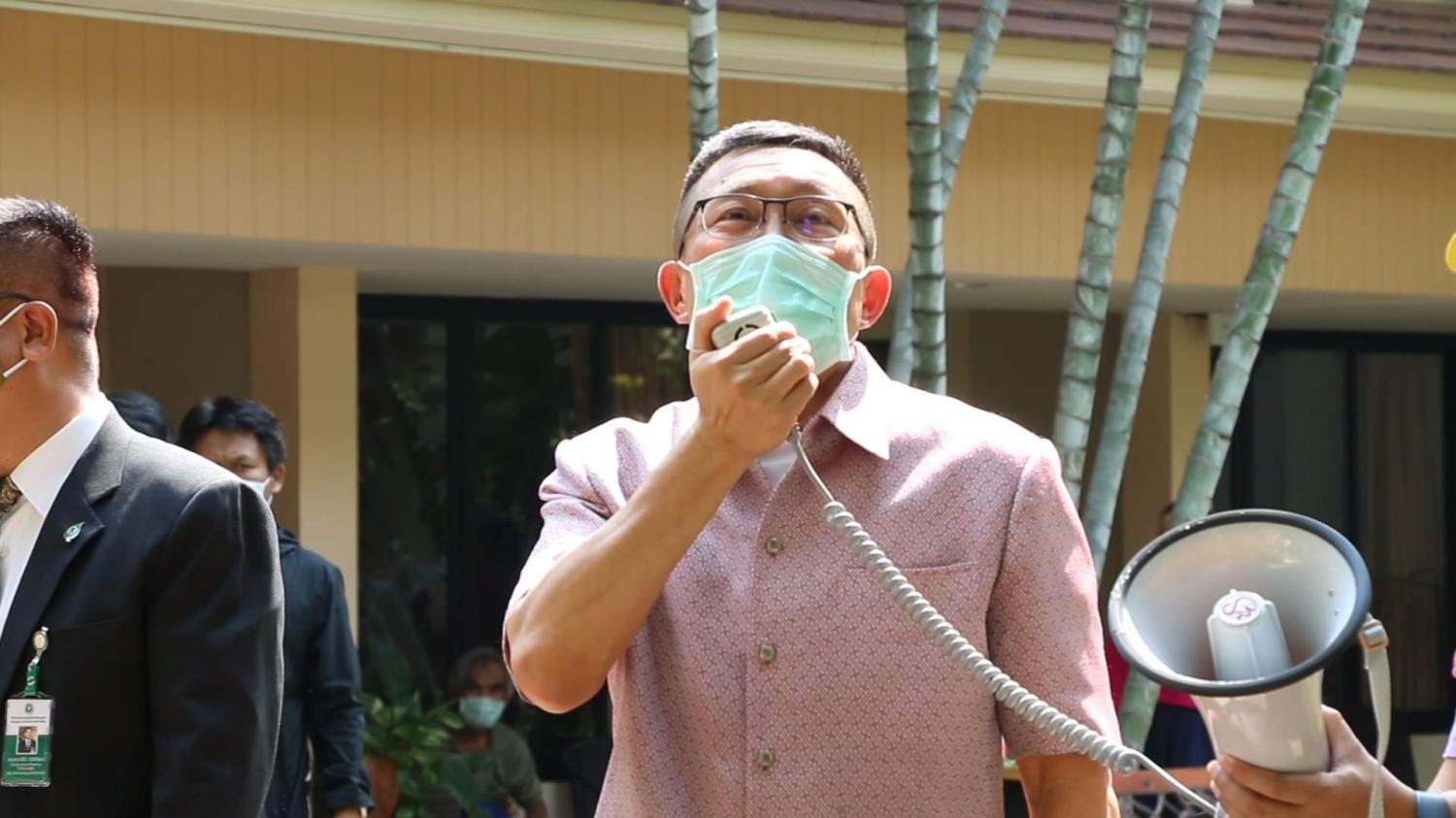 ทั้งนี้ นายสมศักดิ์ได้พบปะพูดคุยกับผู้ที่ถูกควบคุมโรคผ่านทางโทรโข่ง ท่ามกลางรอยยิ้มและเสียงหัวเราะ ทุกคนต่างโบกไม้โบกมือผ่านหน้าต่าง หรือบริเวณระเบียง พร้อมกันนี้ยังได้มอบของใช้ส่วนตัวอาหารและขนมเพื่อให้กำลังใจ รวมถึงมีการปรบมือเพื่อให้กำลังใจแก่บุคลากรทางการแพทย์ด้วย โดยกิจกรรมครั้งนี้ทั้งเสียงหัวเราะและน้ำตาแห่งความปลื้มใจ