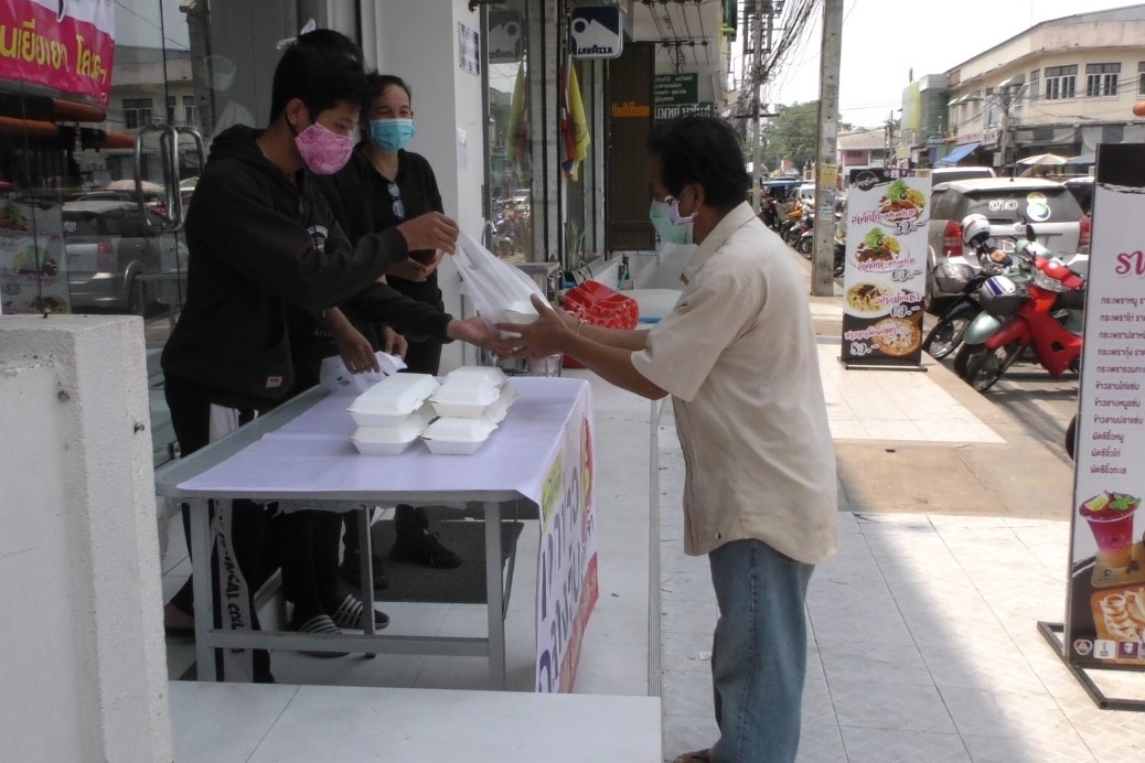 ที่หน้าร้านขายยาขวัญเรือนโอสถ ในตัวเมืองชัยนาท ทางร้านได้ทำข้าวกล่องตั้งโต๊ะแจกให้กับคนที่กำลังเดือดร้อน และได้รับผลกระทบจากการระบาดของเชื้อโควิด-19 โดยผู้ที่มาขอรับข้าวกล่องสามารถขอได้ตามจำนวนที่ต้องการนำกลับไปรับประทาน