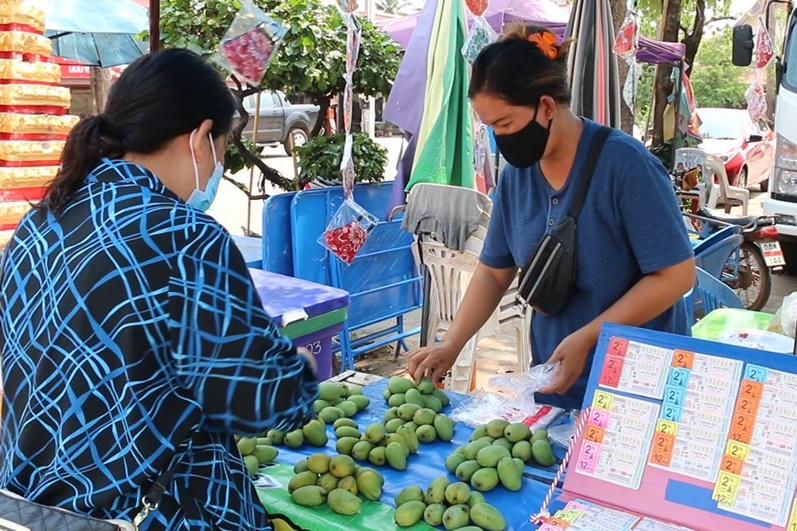 แม่ค้าสลากฯเจอโรคเลื่อนวันออกรางวัลหนีตายขายมะม่วงแทน