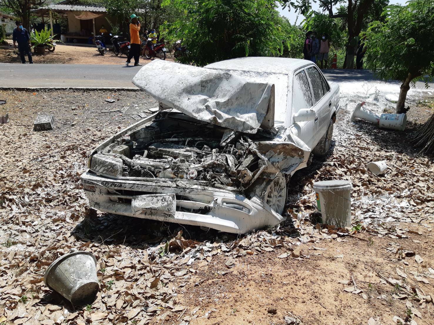 หลวงพ่อซิ่งเก๋งชนยับคนงานตีเส้นถนนขาขาดตายสยองคาที่