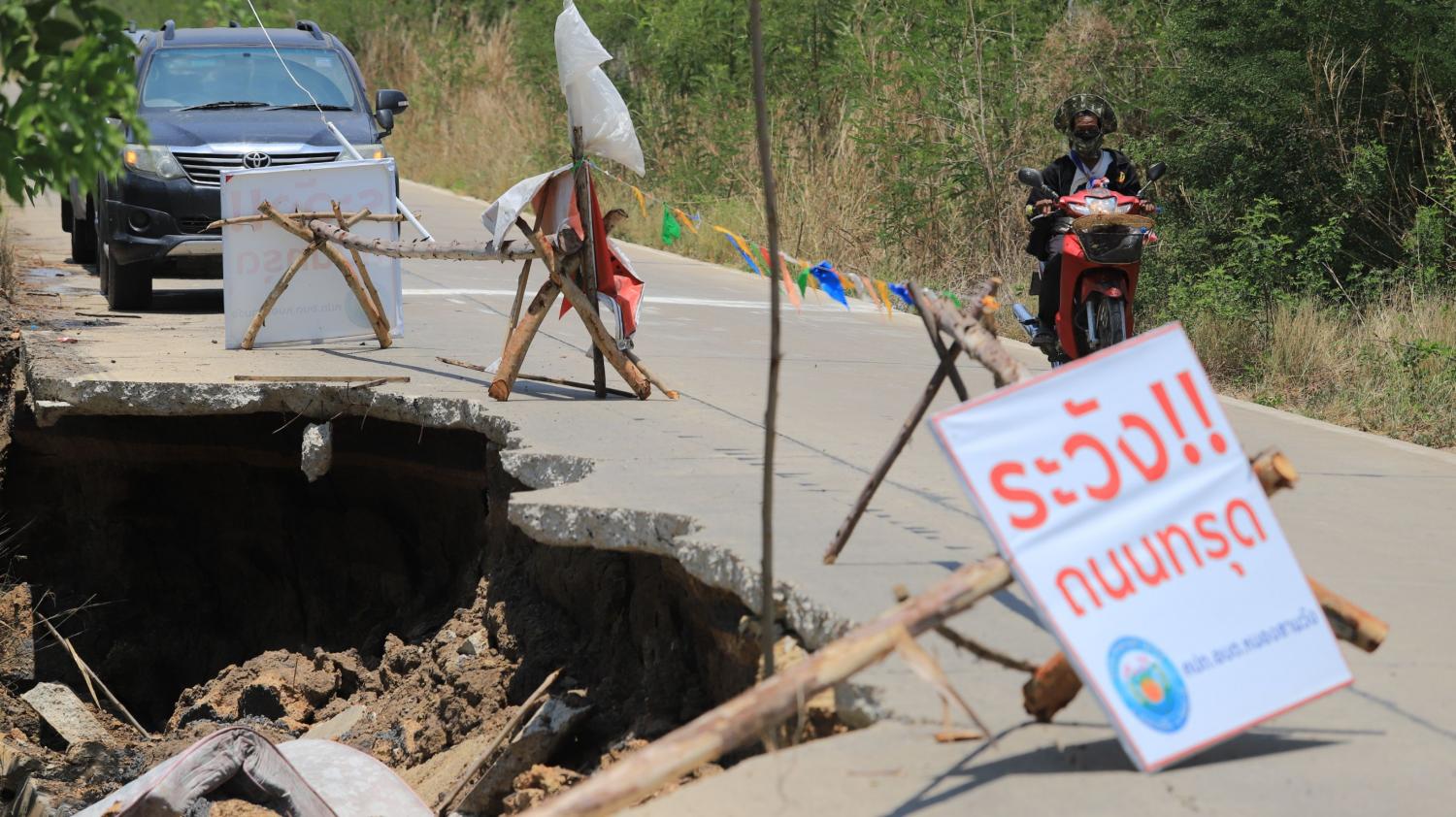 ปทุมธานี-นายกชาญสั่งเร่งซ่อมถนนเลียบคลอง 13-14 หลังถูกภัยแล้งคุกคามจนเกิดทรุดตัวพังยับยาวกว่า 100 เมตร รองผู้ว่าฯบุกดูเห็นจะจะกับตา