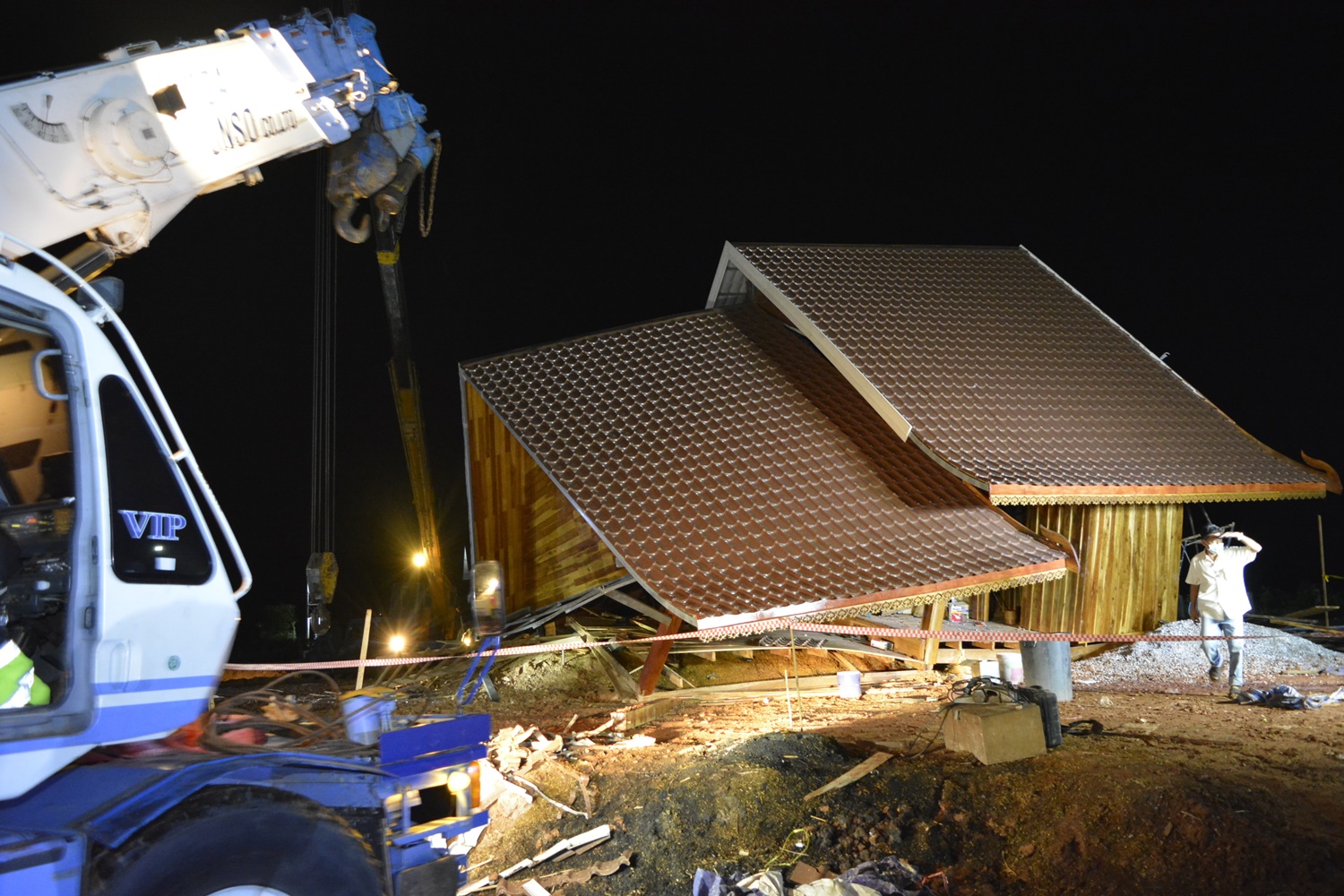 นครพนม-บ้านทรงไทยถล่มทับเด็กคนงานวัย15ดับ พบพึ่งสร้างยังไม่เสร็จสมบูรณ์ คาดเกิดจากปัญหาโครงสร้าง แถมเจอแรงพายุ