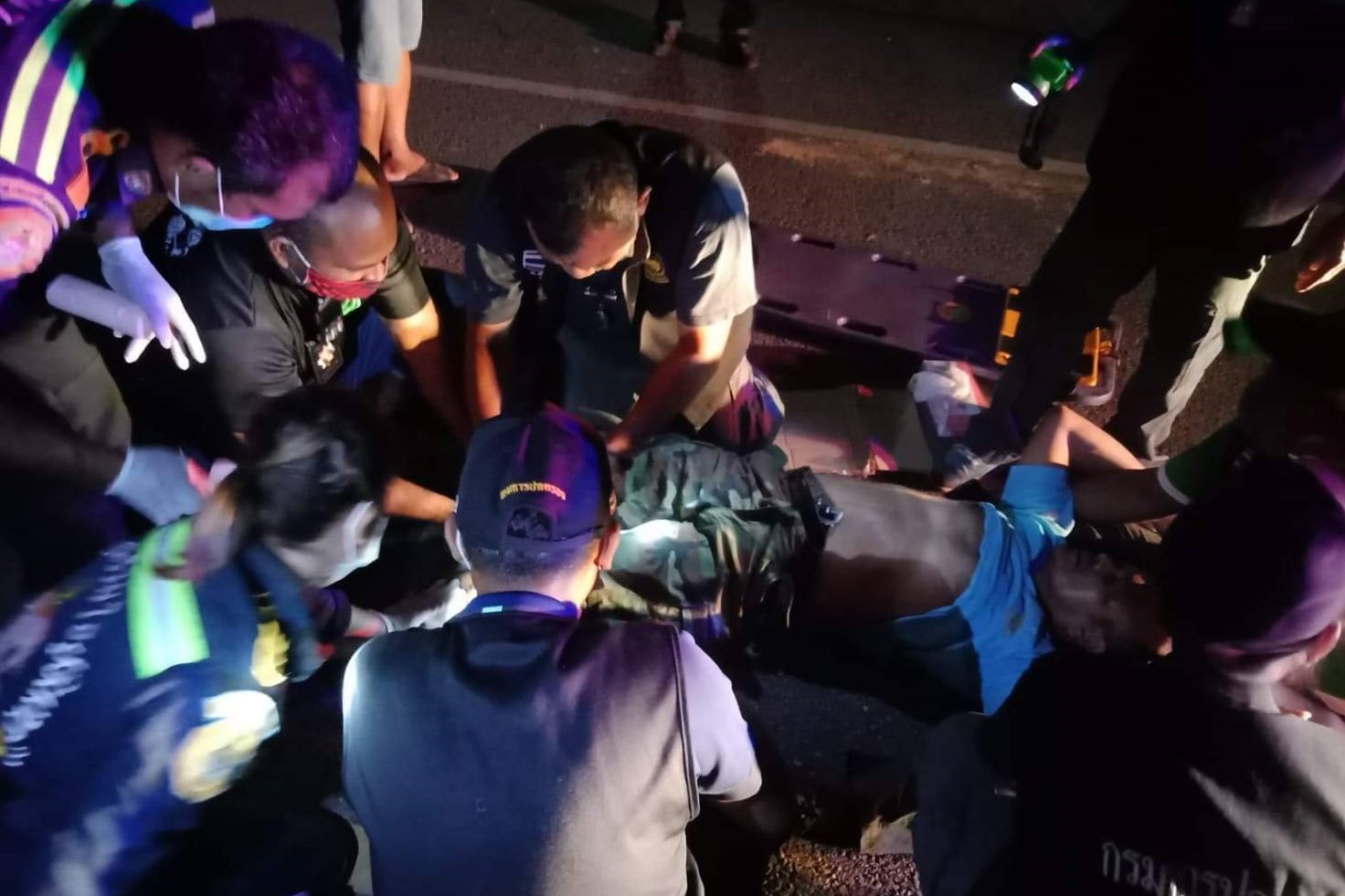 ผู้ใหญ่บ้านโดดขวางจยย.แหกด่านโควิดถูกชนเจ็บขาหัก