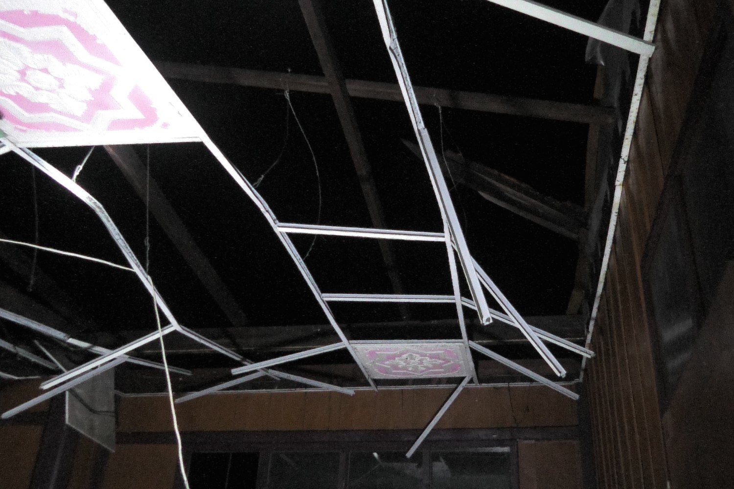 นายสุรพล เธียรสูตร นายกเทศมนตรีเมืองน่าน นำเจ้าหน้าที่สำรวจความเสียหายในช่วงเวลาเคอร์ฟิว ตามพ.รก.ฉุกเฉิน เพื่อควบคุมการแพร่ระบาดเชื้อไวรัสโควิด-19 ร้านเสถียรการไฟฟ้าซึ่งเป็นร้านจำหน่ายอุปกรณ์ไฟฟ้า ชั้นบนโครงสร้างเป็นไม้ หลังคาปลิวไปไกลกว่า30เมตร ฝาเพดานเปิดออกเกือบทั้งหมดทำให้สินค้าอุปกรณ์ไฟฟ้าเปียกเสียหาย