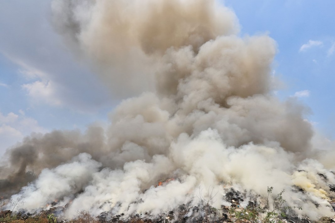 ปทุมธานี-ไฟไหม้บ่อขยะคลอง3ควันยังคลุ้งทั่วเมือง ประชาชนต้องสวมหน้ากากอนามัยป้องกันกลิ่นพิษ