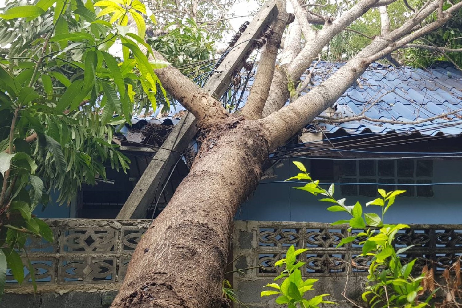 แรงลมพายุฤดูร้อนหักโค่นต้นไม้ใหญ่ทับบ้านเรือนที่ปราจีนบุรี