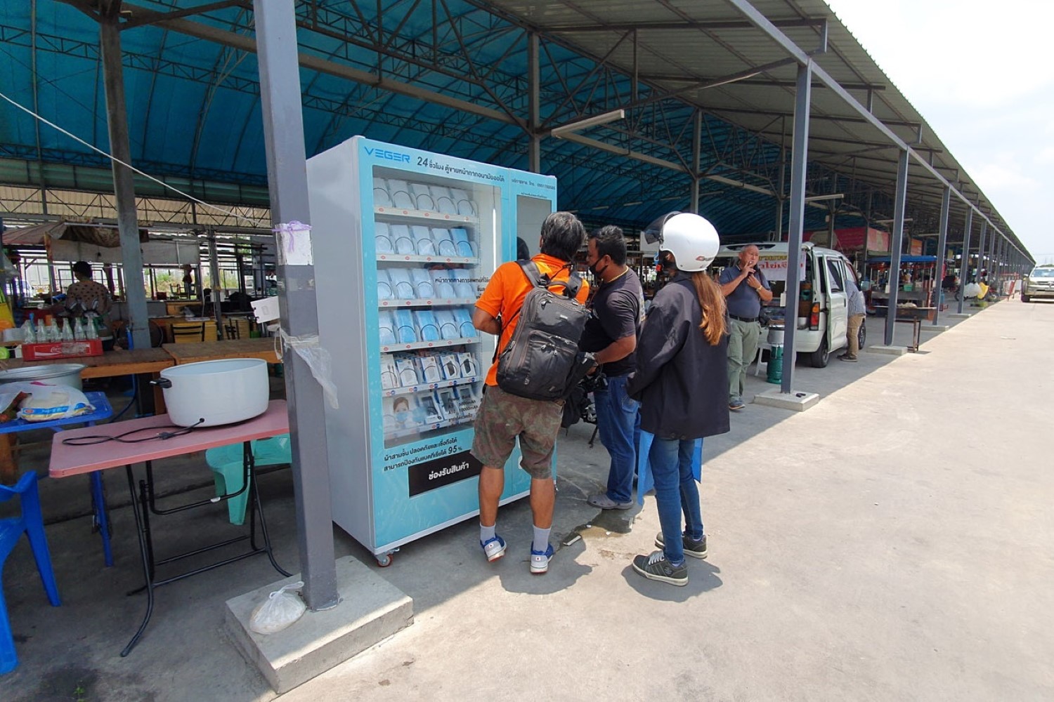 เมื่อวันที่ 25เม.ย.63 ที่ตลาดสด ส. เสริมสุข ชุมชน วโรชา หมู่ที่ 2 ตำบลบางเพรียง อำเภอ บางบ่อ จังหวัดสมุทรปราการ ชาวบ้านหลายคนไปยืนมุงกันอยู่ที่หน้าตู้หยอดเหรียญหน้ากากอนามัยอัตโนมัติ ซึ่งตั้งอยู่ด้านข้างตลาดสด ที่มีหน้าจอแสดงสินค้าเป็นหน้ากากอนามัยชนิดต่าง ๆ ทั้งชนิดผ้าและชนิดกระดาษ พร้อมระบุราคา 1 แพ็ค 10 ชิ้น 100 บาท ซึ่งบริษัท เวเกอร์ อิเล็กทรอนิกส์ (ไทยแลน์) เป็นผู้นำมาตั้ง และได้รับความสนใจจากชาวบ้านเป็นอย่างมากต่างพากันมาหยอดเหรียญซื้อหน้ากากอนามัย ซึ่งกำลังเป็นที่ต้องการของชาวบ้านและยังจำหน่ายในราคาที่ถูกกว่าท้องตลาด