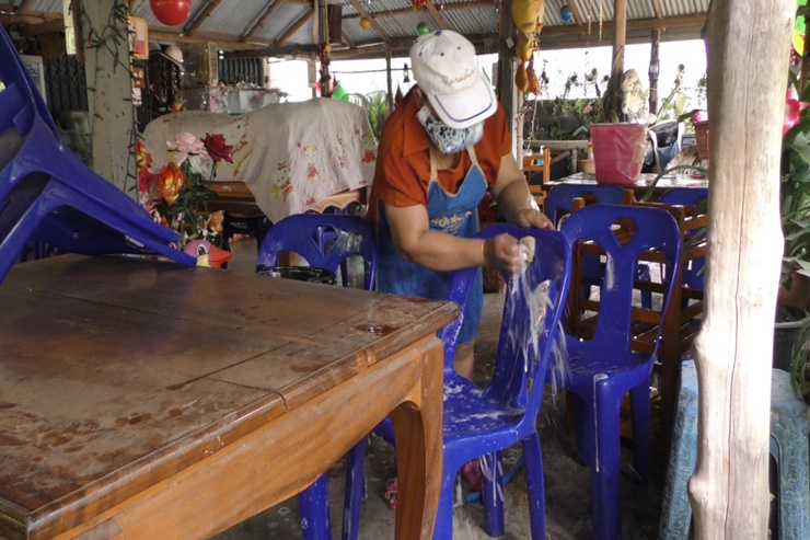 ร้านอาหารเร่งทำความสะอาดเตรียมเปิดขายตามมาตรการคลายล็อก