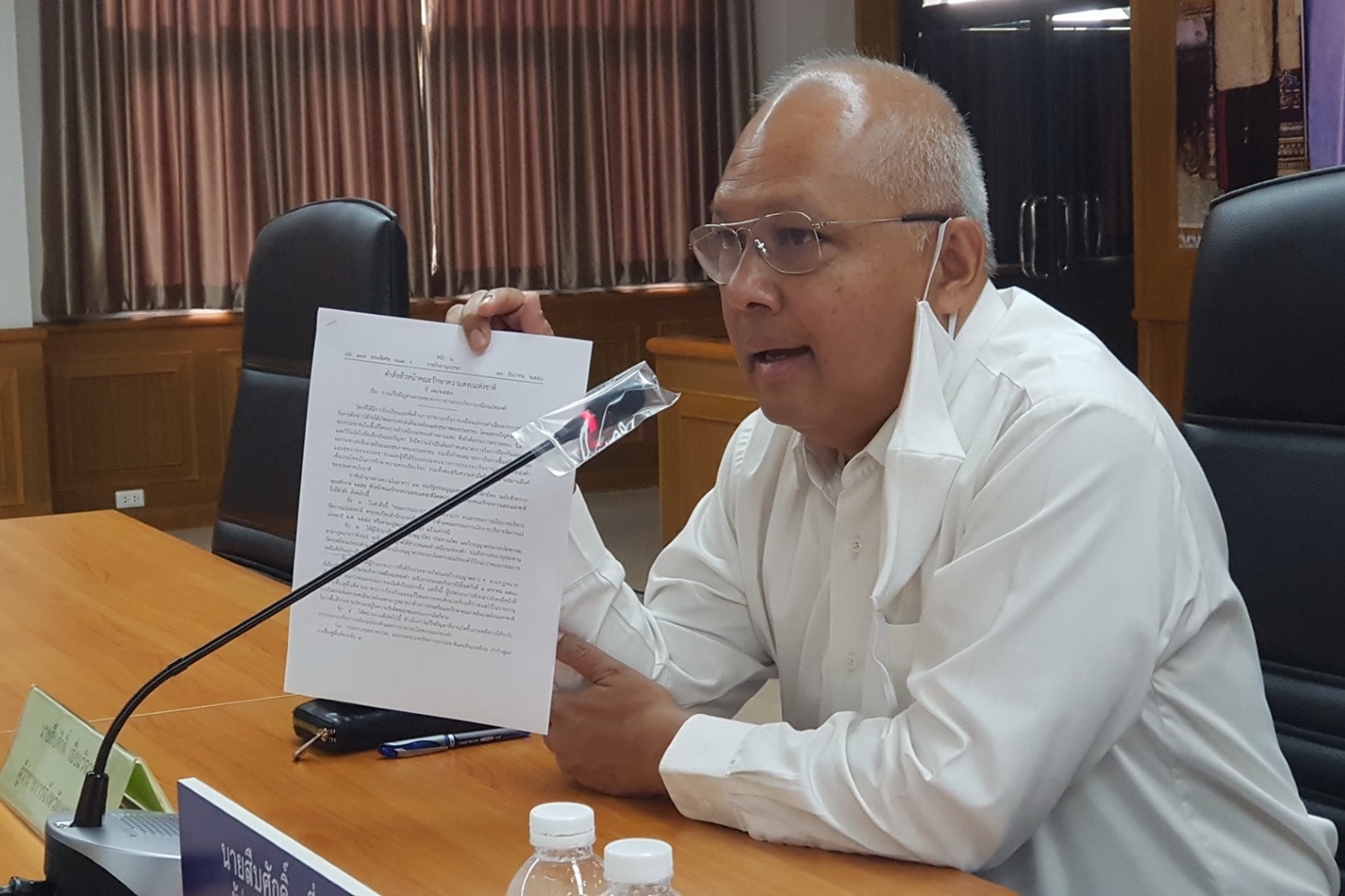 "เรื่องนี้ตามคำสั่งคสช.ซึ่งก็เป็นกฎหมายเช่นกันก็เขียนโต้งๆชัดเจนอยู่แล้ว โดยในที่ประชุมเมื่อสอบถามทางอัยการจังหวัดซึ่งได้วินิจฉัยในข้อกฏหมายแล้วก็ชี้ว่า ต้องทำตามคำสั่ง คสช.ดังกล่าว โดยเฉพาะในข้อ 2 ที่เขียนระบุไว้ชัดเจน"นายสืบศักดิ์กล่าว