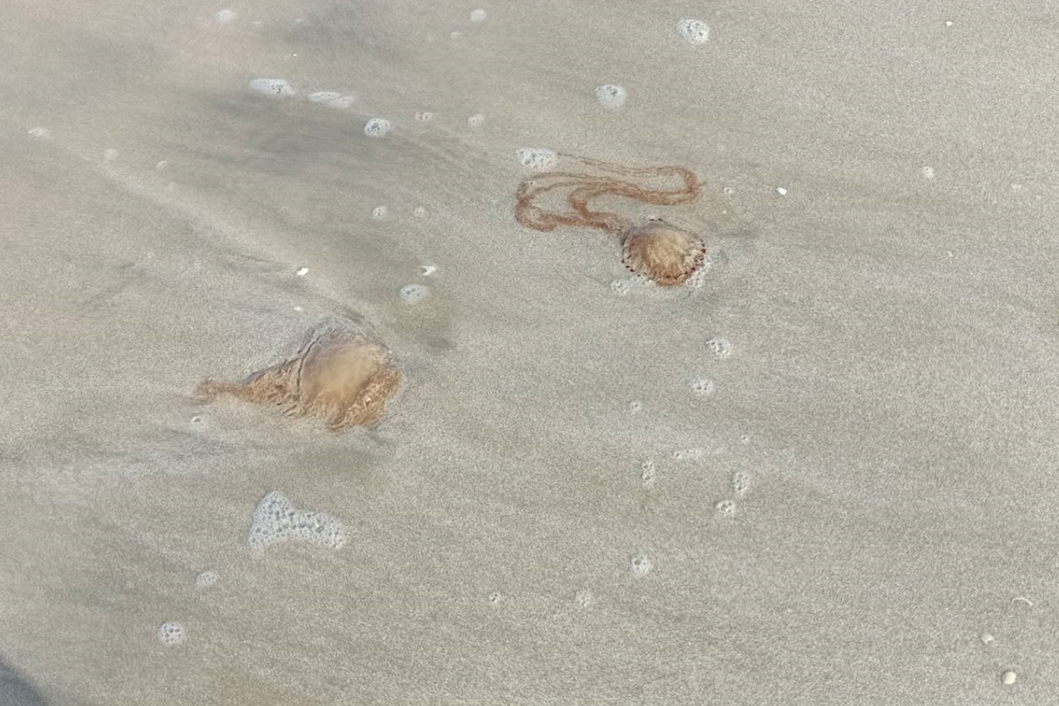 ที่หาดแพรกเมือง บ้านฉิมหลา ต.หน้าสตน อ.หัวไทร จ.นครศรีธรรมราช ชาวบ้านได้พบแมงกะพรุนไฟนับหมื่นตัวลอยมาเกยอยู่บริเวณหน้าหาดมีลักษณะมีชมพู-แดง มีสายยาวสีชมพู แม้แมงกะพรุนเหล่านี้จะตายไปแล้วแต่ถ้าไปจับต้องจะเกิดเป็นผื่นคันแสบร้อนอย่างรุนแรงทันที