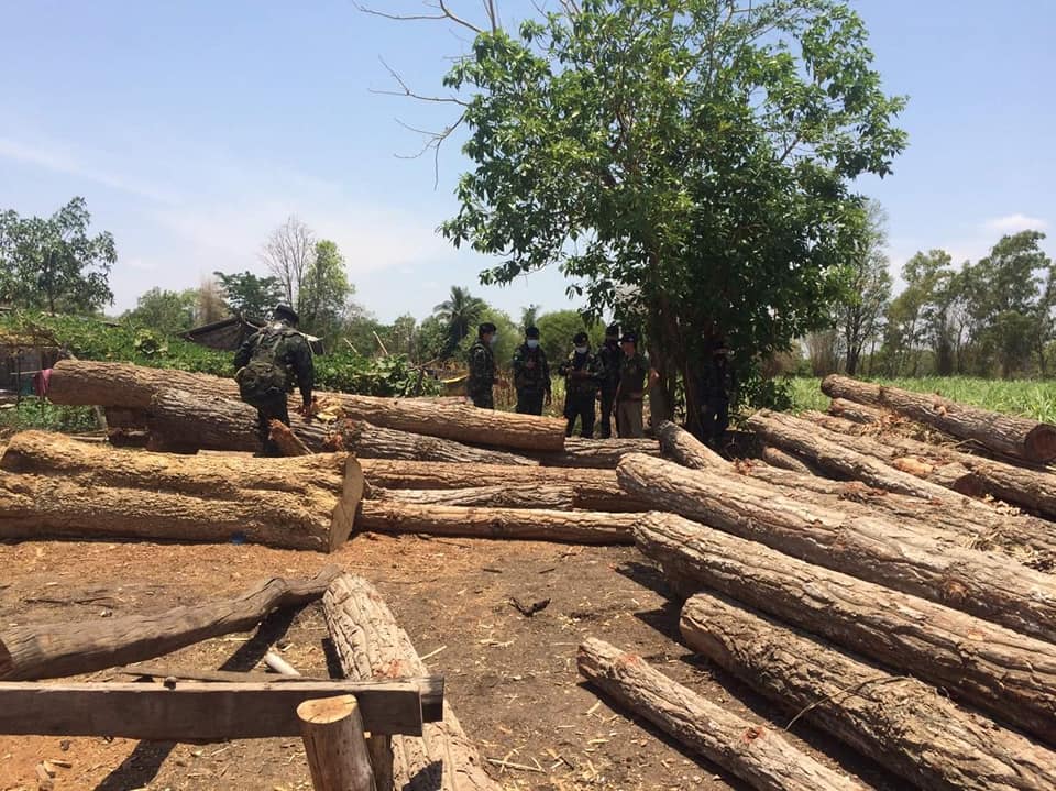 เย้ยกฎหมาย!ทหารบุกจับไม้ซุงกว่า 100 ท่อนของผู้มีอิทธิพลมีสี