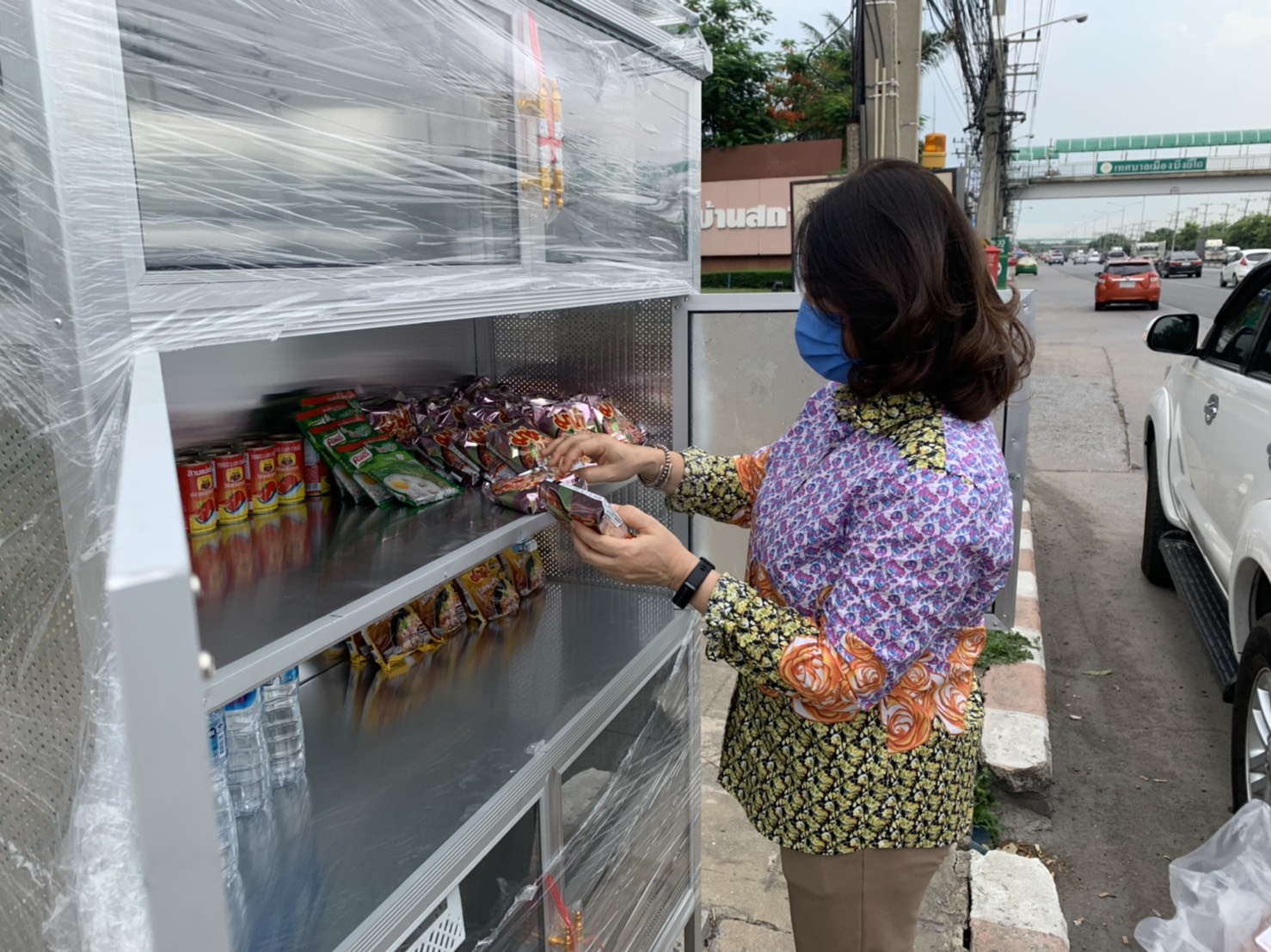 ปทุมธานี-ตู้ปันสุขตู้แรกของจังหวัดตั้งอยู่หน้าหมู่บ้านสถาพร อ.ธัญบุรี ประชาชนเริ่มนำสิ่งของอุปโภคบริโภคมาใส่แบ่งปันจนเต็มตู้ เพื่อให้ผู้ได้รับผลกระทบจากโควิด-19 หยิบไปบรรเทาทุกข์