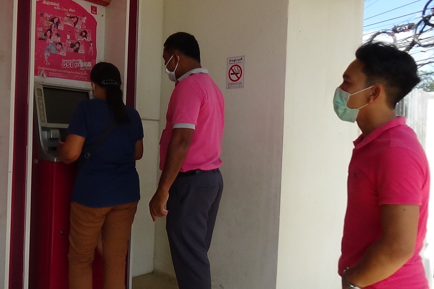 จากนั้น เจ้าหน้าที่ได้พาตนลงไปที่ตู้เอทีเอ็ม ด้านหน้าธนาคาร และสอนให้ตนใส่รหัสเอทีเอ็ม รวมทั้งบอกขั้นตอนต่างๆ เป็นเวลานาน แต่เนื่องจากตนทำไม่ได้ สุดท้ายเจ้าหน้าที่คนดังกล่าวจึงกดถอนให้ ทำให้ตนรู้สึกแปลกใจ เพราะเป็นลูกค้าธนาคารออมสินมาโดยตลอด และมีการฝากถอนปกติไม่มีการใช้บัตรเอทีเอ็มแต่อย่างใด แต่เมื่อมีเงินช่วยเหลือจากภาครัฐฯ ในช่วงโรคระบาดโควิด-19 เข้ามา ธนาคารกลับให้ทำบัตรเอทีเอ็มในอัตราค่าธรรมเนียมสูงถึง 699 บาท ซึ่งเงินจำนวนนี้มีค่ามากสำหรับชาวบ้าน เพราะใช้จ่ายประทังชีวิตได้หลายวัน