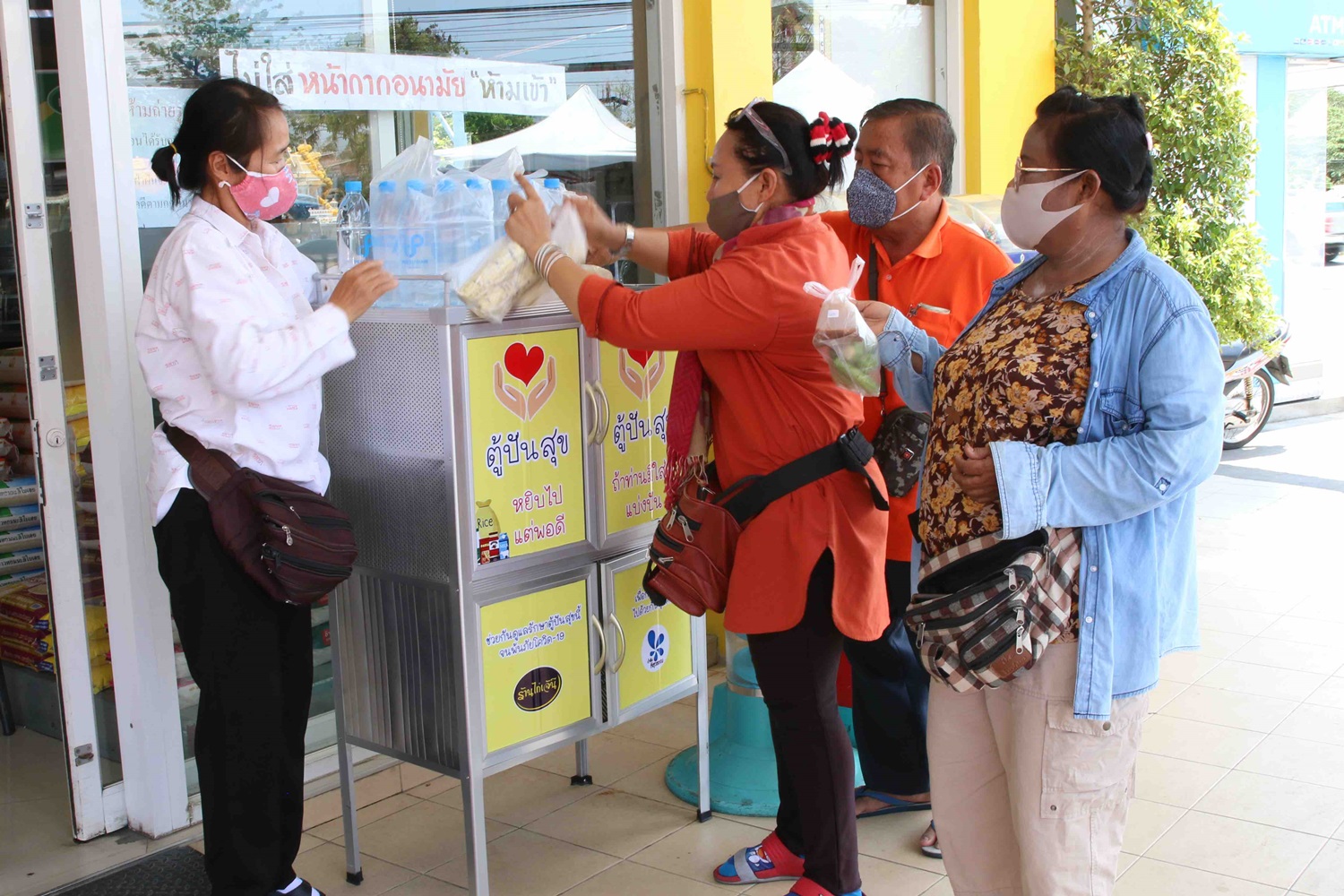 สำหรับตู้ปันสุขของจังหวัดกาญจนบุรี มีการตั้งแทบทุกพื้นที่ทั้ง 13 อำเภอ ทั้งภาครัฐและภาคเอกชน เพื่อแบ่งปันความสุขให้แก่ผู้ได้รับผลกระทบจากสถานการณ์โควิด 19 ต้องอยู่กับบ้านไปได้ไม่มากก็น้อย