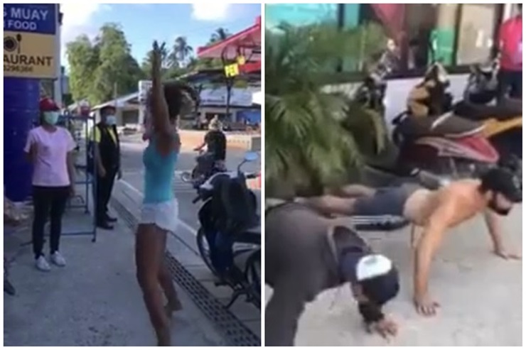 สุราษฎร์ธานี - เจ้าหน้าที่คุมเข้มสถานการณ์โควิด-19 ลงโทษ นักท่องเที่ยวชาวต่างชาติบนเกาะเต่า ที่ไม่ยอมสวมหน้ากากอนามัย ให้วิดพื้น-กระโดดตบ เพื่อเตือนสติให้รับผิดชอบต่อตัวเอง-สังคม เป็นที่ชื่นชอบ