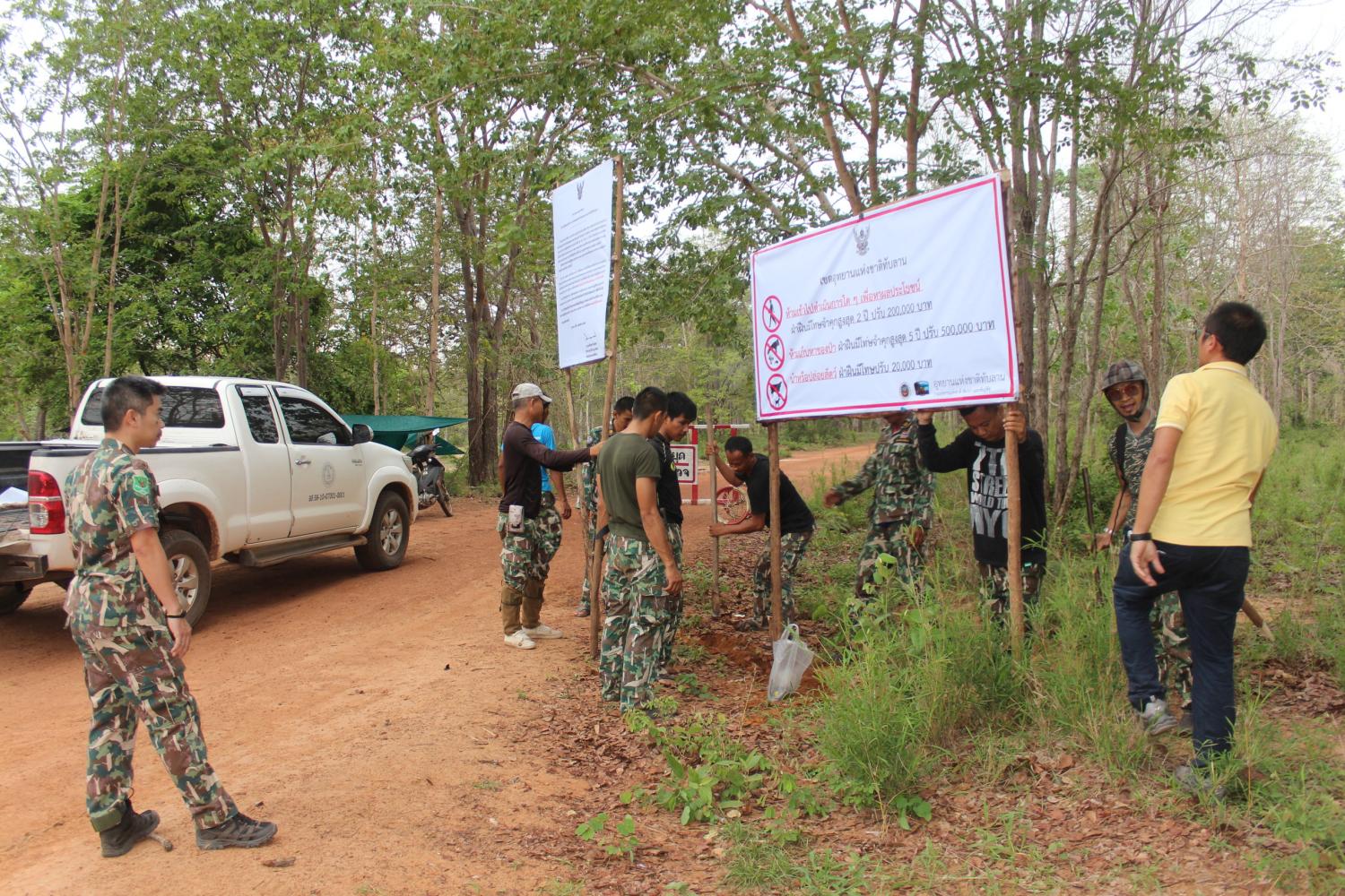 เมื่อวันที่ 19 พ.ค.นายคมสัน มณีกาญจน์ ผู้ช่วยอุทยานแห่งชาติทับลาน นำกำลังเจ้าหน้าที่ พร้อมด้วยผู้นำชุมชน ออกติดตั้งป้ายประกาศห้ามไม่ให้ผู้ใดเข้าไปท่องเที่ยว เก็บหาของป่า และเลี้ยงสัตว์ในเขตพื้นที่อุทยานแห่งชาติทับลาน ท้องที่ต.จระเข้หิน อ.ครบุรี จ.นครราชสีมา อย่างเด็ดขาด โดยนำป้ายประกาศไปติดตั้งไว้ภายในชุมชนที่อยู่ติดกับแนวเขตป่า และบริเวณแนวเขตอุทยานแห่งชาติทับลานท้องที่ต.จระเข้หิน จำนวน 3 จุด ภายหลังจากเกิดเหตุพบซากกระทิงถูกชำแหละอยู่ภายในพื้นที่ป่าท้องที่ต.จระเข้หิน อ.ครบุรี และ รอยต่อระหว่าง อ.วังน้ำเขียว ถึง 2 ตัว ในรอบ 1 เดือน และขณะนี้ทางเจ้าหน้าที่ฯ กำลังอยู่ระหว่างการติดตามหาตัวผู้ชำแหละมาดำเนินคดีตามกฎหมาย