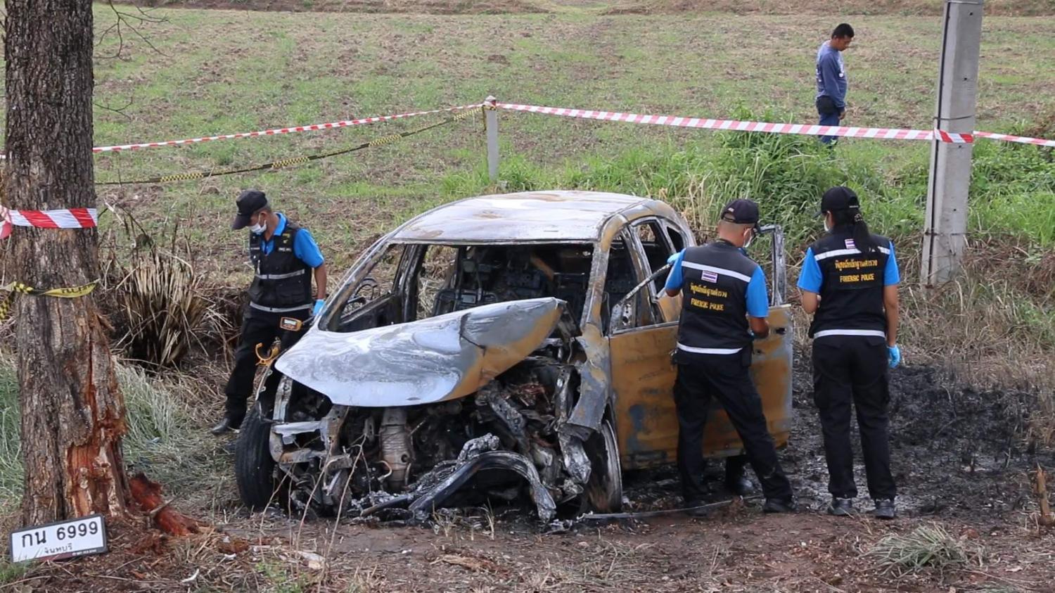 หลังเกิดเหตุได้ประสานเจ้าหน้าที่ ศพฐ.4 ขอนแก่นมาตรวจที่เกิดเหตุ เก็บวัตถุพยานต่างๆในที่เกิดเหตุ ซึ่งตรวจพบปลอกกระสุนขนาด9 มม.เพิ่มอีก 1 ปลอก รวมเป็น 8 ปลอก ส่วนการก่อเหตุคาดการณ์ว่ารถเก๋งน่าจะเสียหลักชนต้นไม้แล้วถูกคนร้ายใช้อาวุธปืนขนาด9 มม.ยิงซ้ำ คนร้ายน่าจะยืนอยู่ริมถนนในจุดที่พบปลอกกระสุนเล็งไปที่รถซึ่งกระสุนถูกรถเพียง 2 นัดอีก 6 นัดไม่ทราบว่าถูกคนที่นั่งในรถหรือไม่ เนื่องจากรถถูกไฟไหม้ จึงไม่มีหลักฐานอื่นหลงเหลือในรถ และไม่ทราบว่าในรถมากันกี่คน