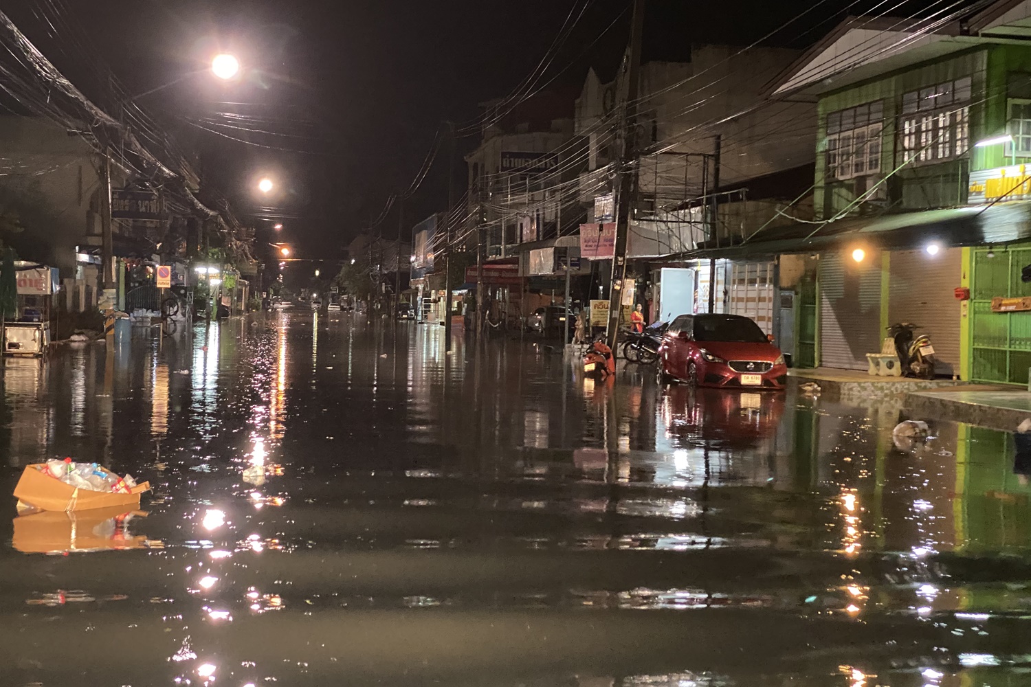 ฝนตกหนักน้ำท่วมถนนหลายสายกลางเมืองกาฬสินธุ์