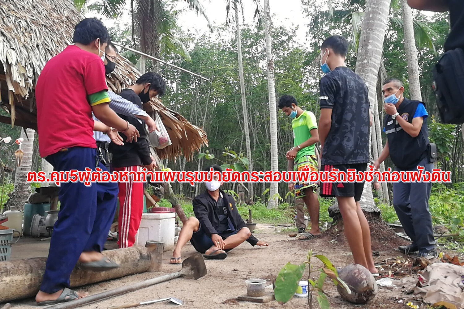 สงขลา-ตำรวจคุมตัว5ผู้ต้องหารุมฆ่าเพื่อนรักยัดกระสอบฝังดินทำแผน5จุด อึ้ง! ใช้ปืนยิงซ้ำเดินข้ามศพ5รอบตัดวิญญาณให้จำไม่ได้ว่าใครลงมือ