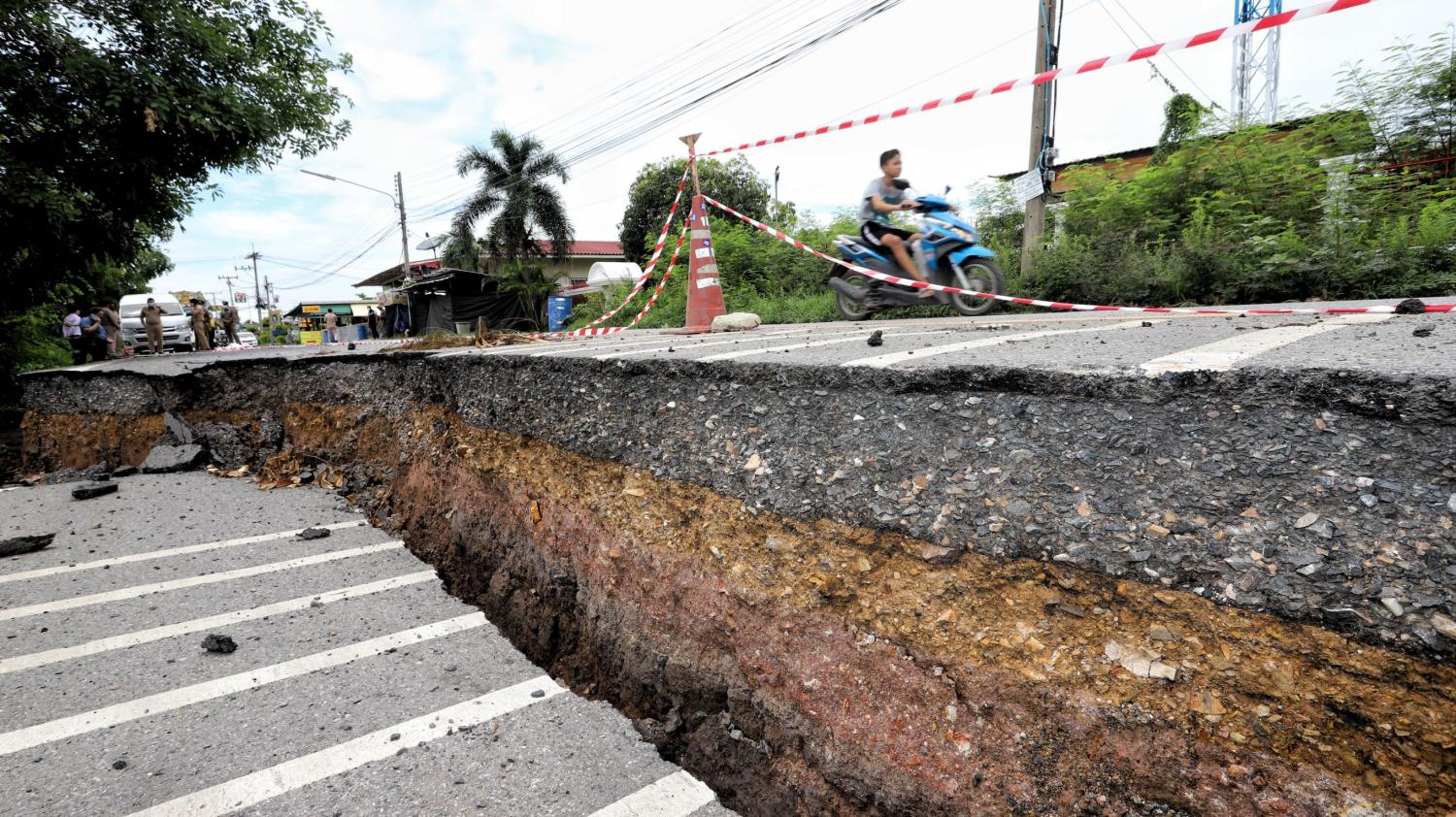 นายชาธิป กล่าวว่า จากสถานการณ์ภัยแล้งที่ผ่านมาทำให้ถนนหลายสายบางช่วงของอ.หนองเสือได้เกิดทรุดลง ทำให้ถนนริมคลอง และถนนช่วงคอสะพานพังเกิดการเสียหายประชาชนสัญจรไปมาไม่สะดวก เกรงจะเกิดอันตรายต่อผู้ใช้รถใช้ถนน สาเหตุเกิดจากปัญหาภัยแล้งระดับน้ำในคลองชลประทานลดระดับลงอย่างรวดเร็วต่อเนื่อง ทำให้ดินใต้พื้นผิวจราจรเกิดการทรุดตัวเป็นโพรงเป็นแนวยาว