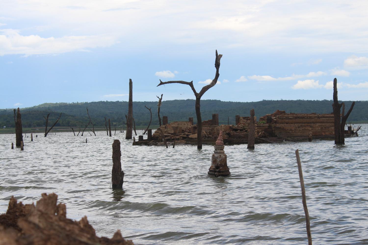 นครราชสีมา-เขื่อนลำแชะแห้งขอดเหลือน้ำใช้ได้จริงแค่ร้อยละ 12 ของความจุ ส่งผลให้ซากปรักหักพังที่จมอยู่ใต้น้ำโผล่อวดความสวยงามทางธรรมชาติในรอบ 21 ปี