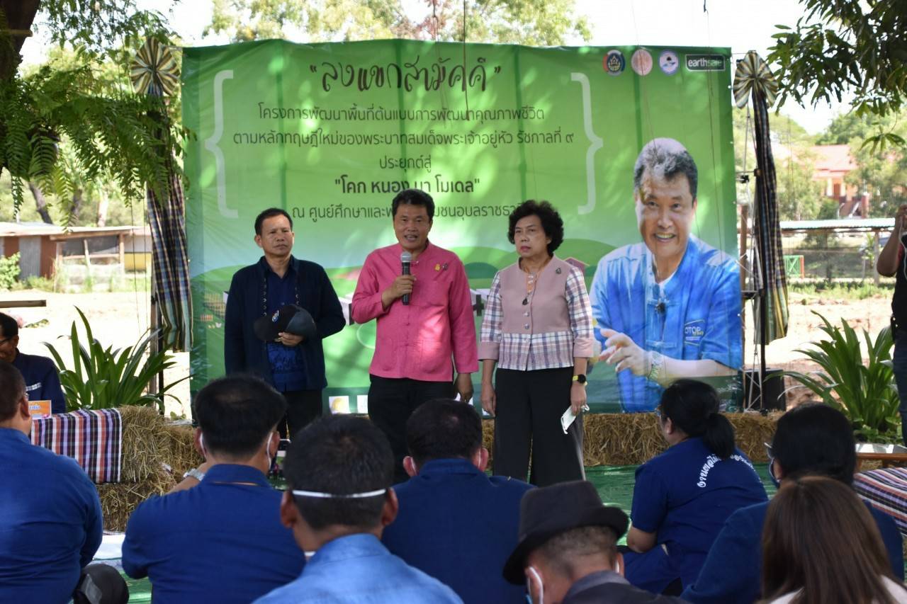 เมื่อวันที่ 7 มิ.ย.ที่ศูนย์ศึกษาและพัฒนาชุมชน จ.อุบลราชธานี นายสุทธิพงษ์ จุลเจริญ อธิบดีกรมการพัฒนาชุมชน(พช.) กระทรวงมหาดไทย ดร.วันดี กุญชรยาคง จุลเจริญ ประธานสภาสตรีแห่งชาติ ในพระบรมราชินูปถัมภ์ เดินทางไปร่วมกิจกรรมเอามื้อสามัคคี บริเวณพื้นที่ต้นแบบ “โครงการพัฒนาพื้นที่ต้นแบบการพัฒนาคุณภาพชีวิต” ตามหลักทฤษฎีใหม่ของ พระบาทสมเด็จพระบรมชนกาธิเบศร มหาภูมิพลอดุลยเดชมหาราช บรมนาถบพิตร รัชกาลที่ 9 ประยุกต์สู่ "โคก หนอง นา โมเดล" โดยมี นายสฤษดิ์ วิฑูรย์ ผวจ.อุบลราชธานี พร้อมด้วย นายกเหล่ากาชาดอุบลราชธานี นายชูวิทย์ พิทักษ์พรพัลลภ ส.ส.อุบลราชธานี ประธานหอการค้าอุบลราชธานี เซฟอุบลอุบลราชธานี และ หน่วยงานภาคีเครือข่ายร่วมกิจกรรมจำนวนมาก