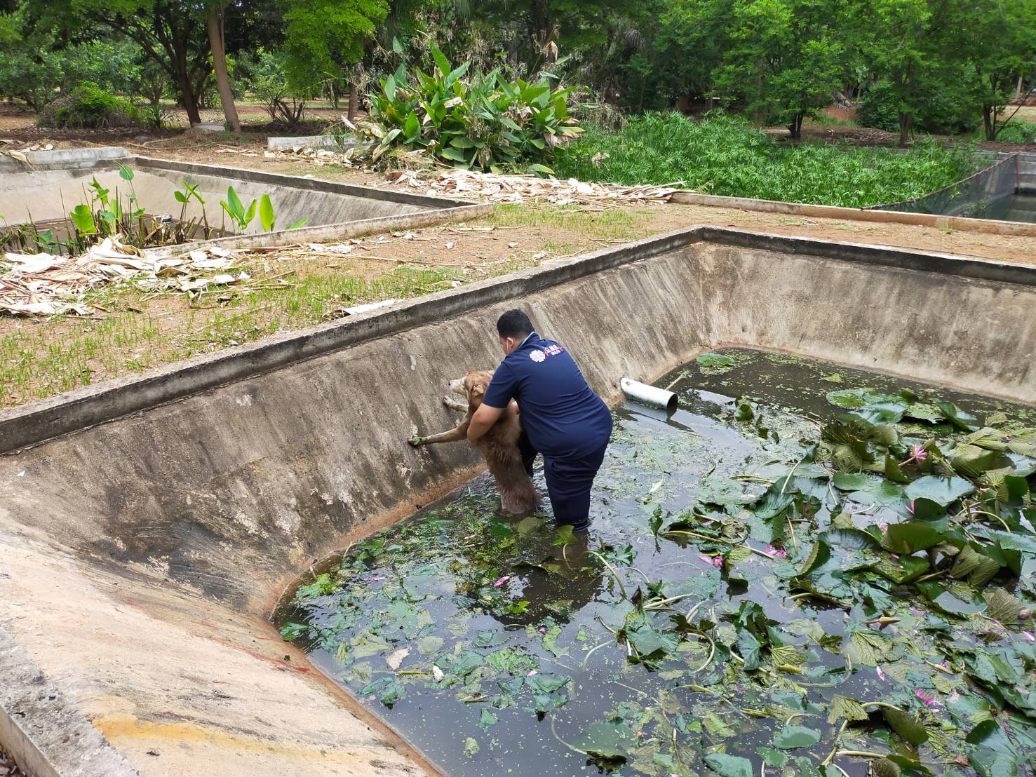 นครราชสีมา-ภาพน่ารักนาทีอาสากู้ภัยโคราชใจดีช่วยสุนัขไซบีเรียน ฮัสกี้ หลัดตกลงในบ่อพักน้ำเสียอย่างทุลักทุเล แต่ก็ช่วยเหลือขึ้นจากบ่อได้สำเร็จ นำส่งให้เจ้าของอย่างปลอดภัย