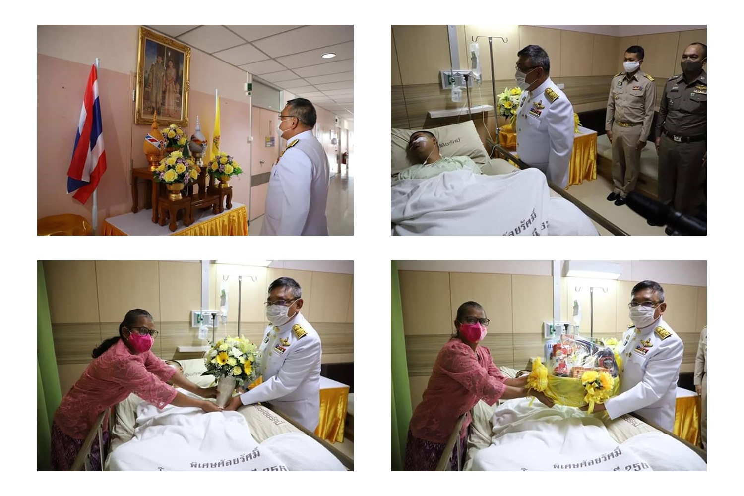 ในหลวง-พระราชินี พระราชทานดอกไม้ตระกร้าสิ่งของ เยี่ยมพลทหารถูกลอบยิง