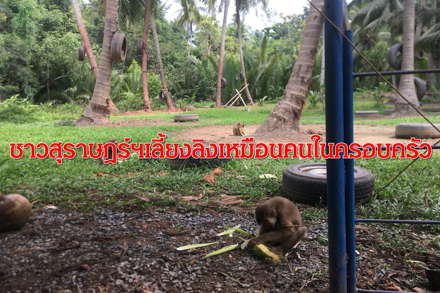 ชาวสุราฎร์ธานีไม่มีการทารุณลิงเก็บมะพร้าวเลี้ยงดูเหมือนคนในครอบครัว