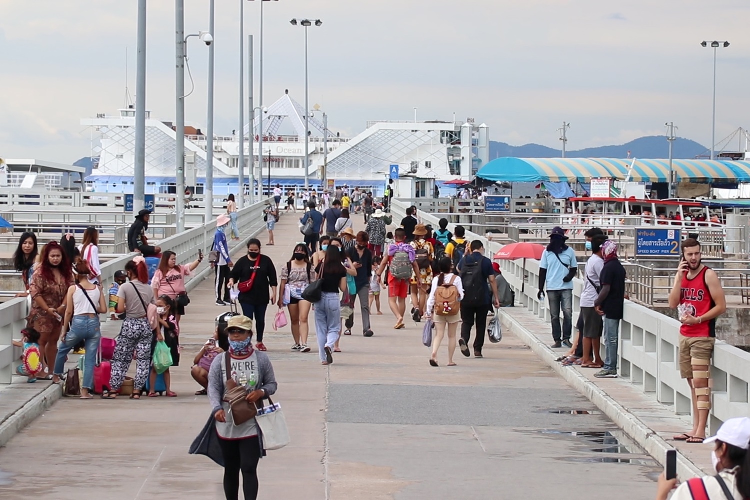 พัทยา-พัทยากลับมีมาสีสันอีกครั้งหลังซบเซาโควิด-19 หยุดยาว4วันนักท่องเที่ยวไทยแห่พักผ่อนจับจองที่พักเล่นน้ำทะเลข้ามไปเกาะล้าน