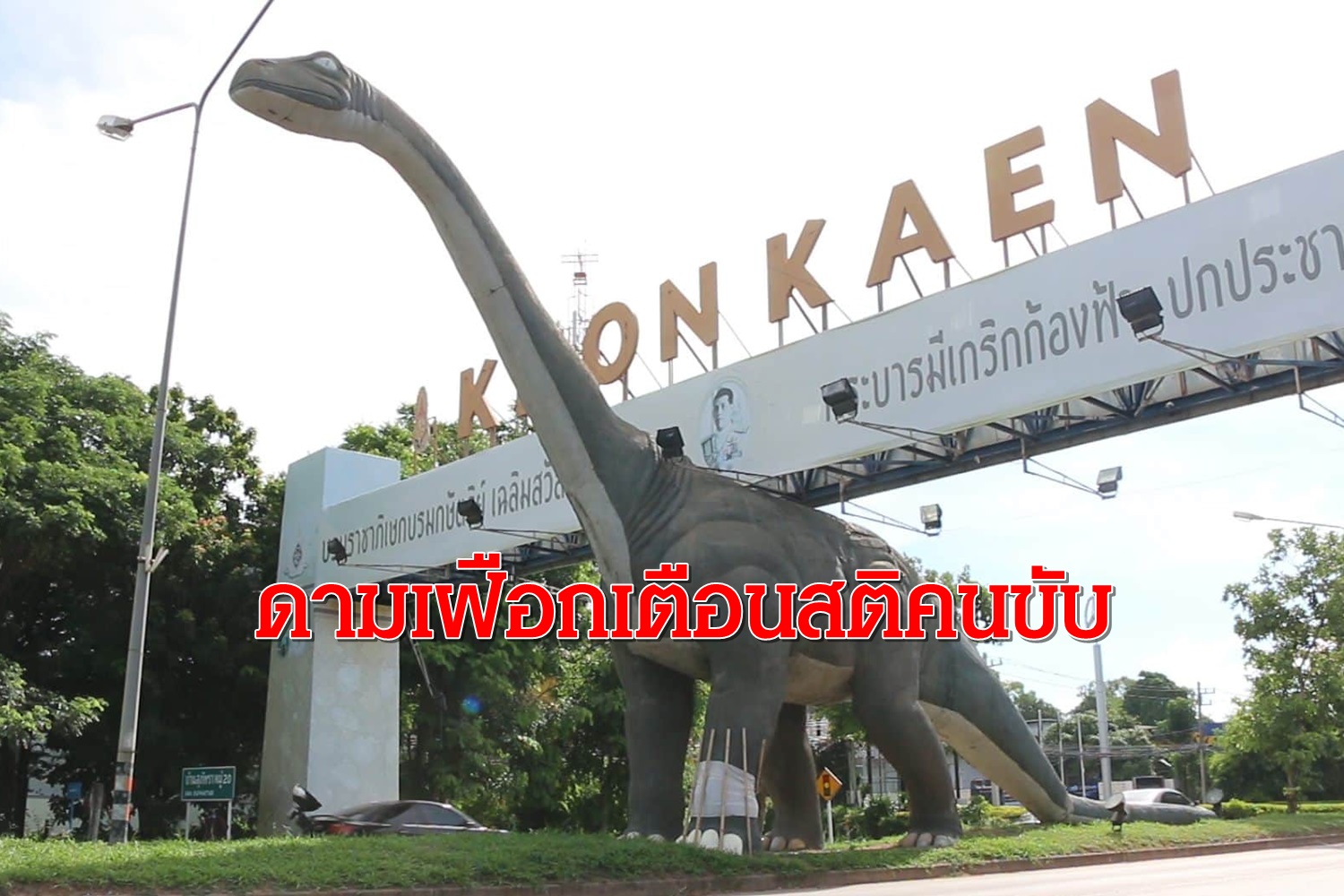 ขอนแก่น-หอการค้าขอนแก่นแจงดามเฝือกขารูปปั้นเสมือนจริงไดโนเสาร์หลังถูกกระบะชนเพื่อเตือนสติคนขับให้เพิ่มความระมัดระวัง