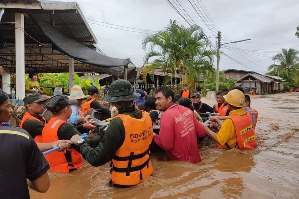 ศูนย์บรรเทาสาธารณภัย มณฑลทหารบกที่ 28 ส่งกำลังพลเข้าช่วยเหลือชาวบ้านที่เจอน้ำป่าไหลหลากเข้าท่วมบ้านเรือนกว่า 300 หลังคาเรือนที่ จ.เลย