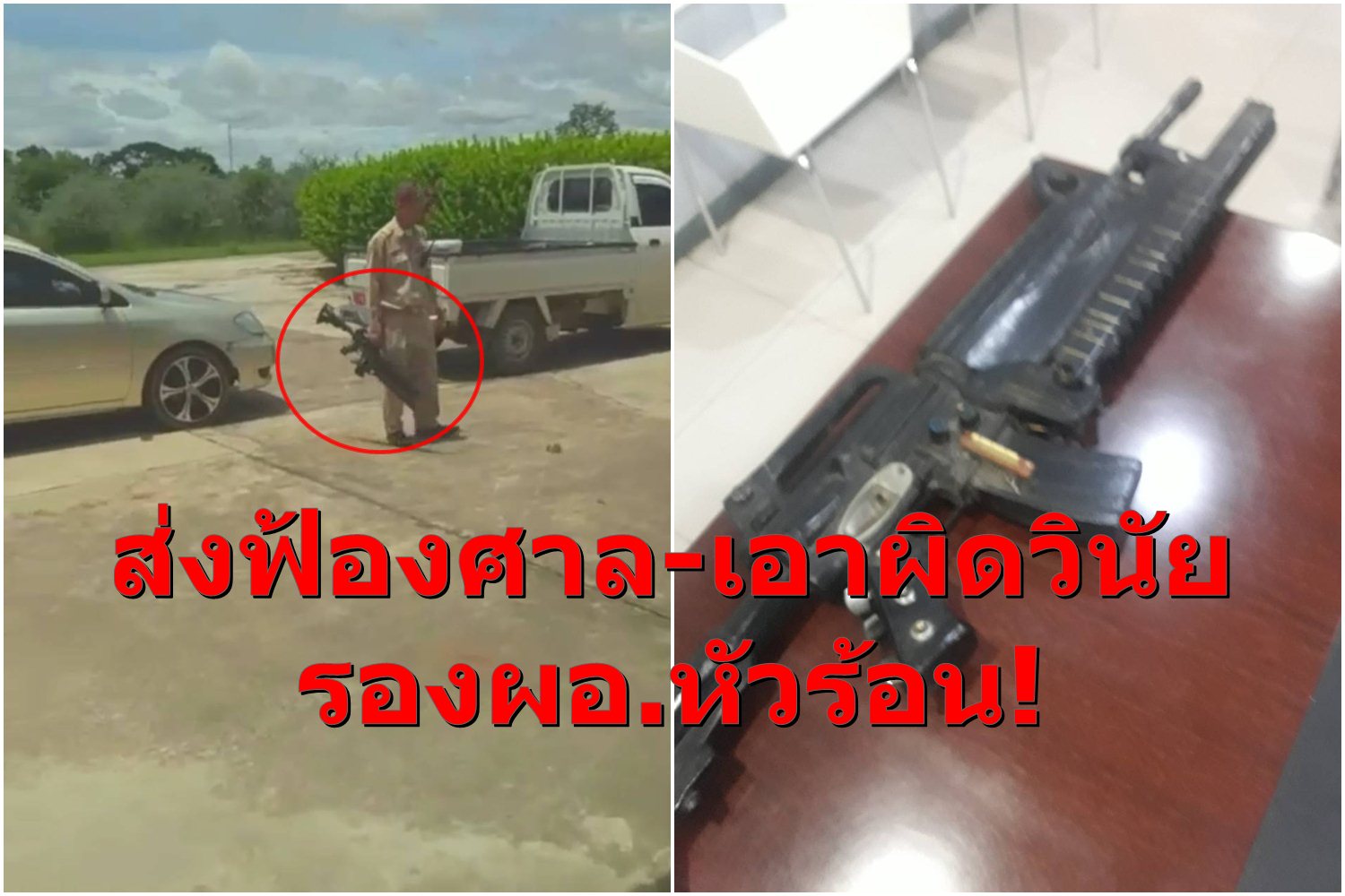 ผู้สื่อข่าวรายงานความคืบหน้ากรณี รองผู้อำนวยการโรงเรียนแห่งหนึ่งในพื้นที่อำเภอครบุรี จังหวัดนครราชสีมา นำพิณที่มีลักษณะคล้ายปืนสงครามออกมาข่มขู่คู่กรณีหลังมีปากเสียงกันระหว่างต่อคิวนำรถยนต์เข้าตรวจสภาพรถในสถานตรวจสภาพรถเอกชน ซึ่งคู่กรณีได้เข้าแจ้งความเอาผิดกับรองผู้อำนวยการคนดังกล่าว