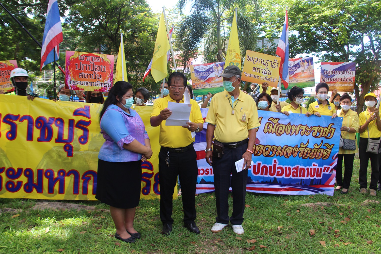 เมื่อวันที่ 25ส.ค.63 ที่ศาลากลางจังหวัดราชบุรี กลุ่มราชบุรีร่วมใจปกป้องสถาบันกว่า 50 คน นำโดยนายประเสริฐ มงคลพร ตัวแทนกลุ่มยื่นหนังสือกับ น.ส.ประภารัตน์ นาคผจญ ผู้อำนวยการกลุ่มงานศูนย์ดำรงธรรม จ.ราชบุรี เรื่องขอให้เร่งปกป้องสถาบันพระมหากษัตริย์และภัยคุกคามในสถานศึกษา